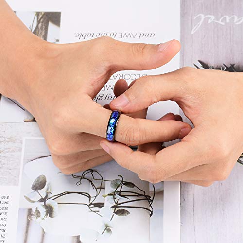 King Will Mens 4mm / 6mm / 8mm Anillo de boda con revestimiento de tungsteno negro Incrustación Fragmentos de azul púrpura Banda de compromiso