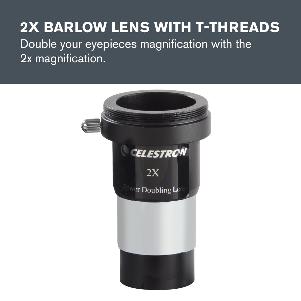 -ATTACH YOUR CAMERA: The 2x Power Lens features T-threads so you can attach a DSLR camera to your telescope with an optional T-ring (sold separately).