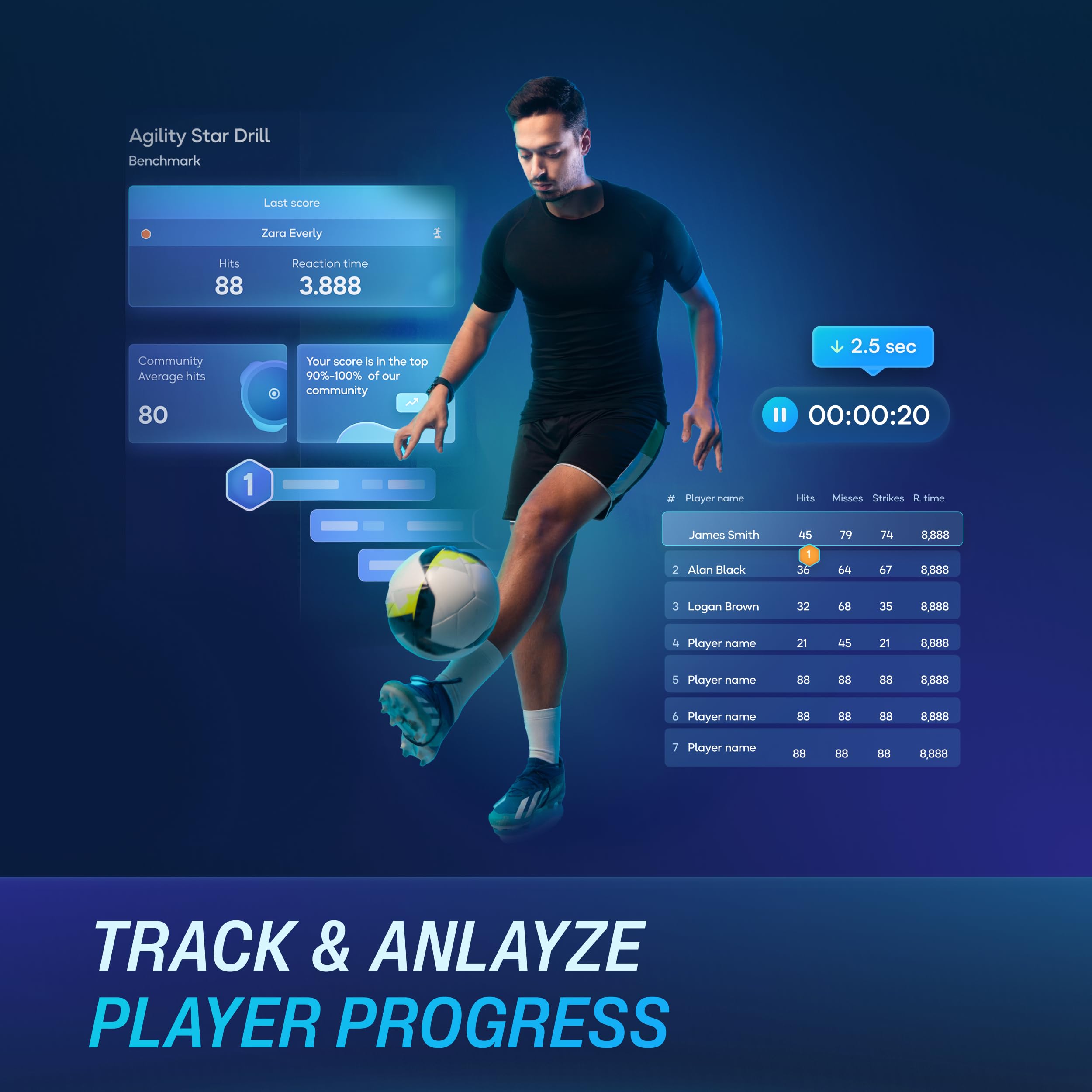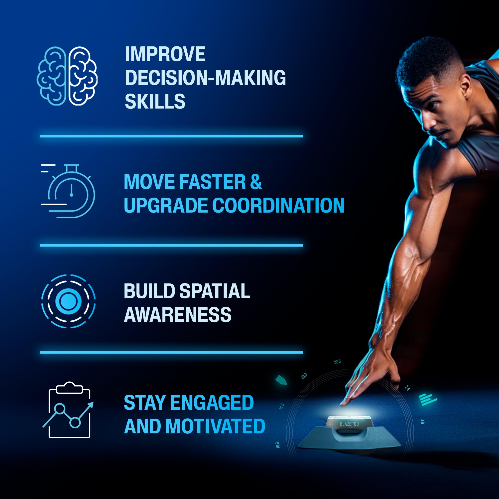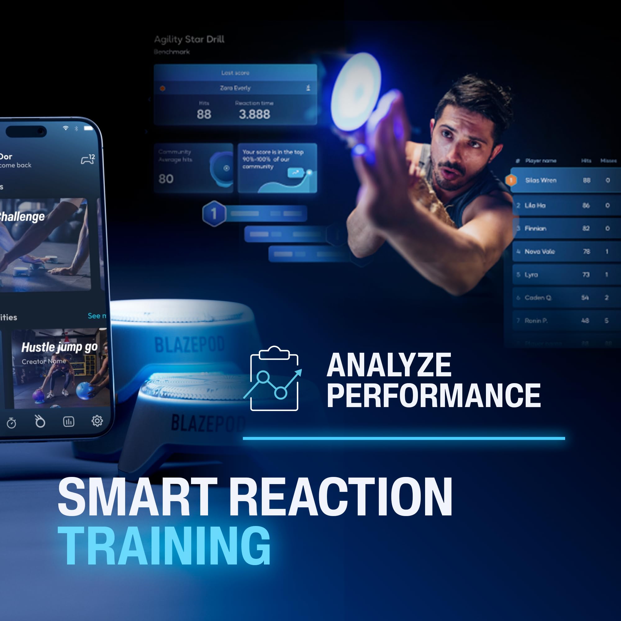 -App-Powered Training System The BlazePod app tracks every tap and session. Visualize performance, compare progress, and adjust based on real-time feedback.