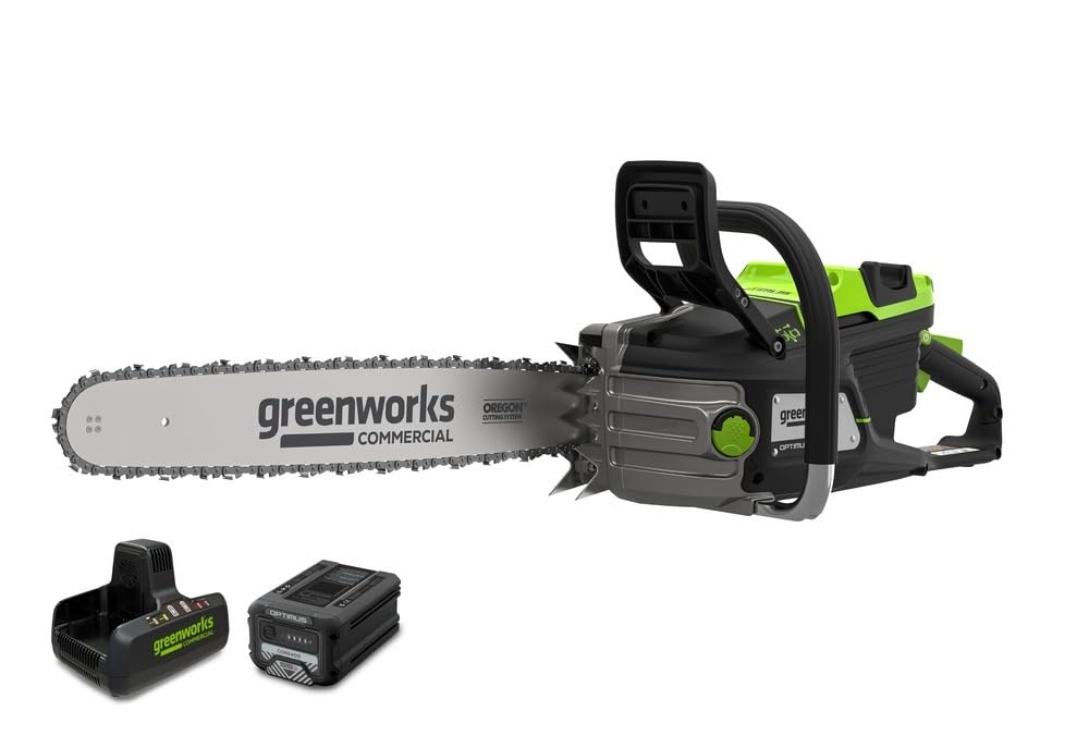 Kit de motosierra con batería de 3,6 kW y 20" con batería CORE400 de 82 V y cargador DP de Greenworks Commercial