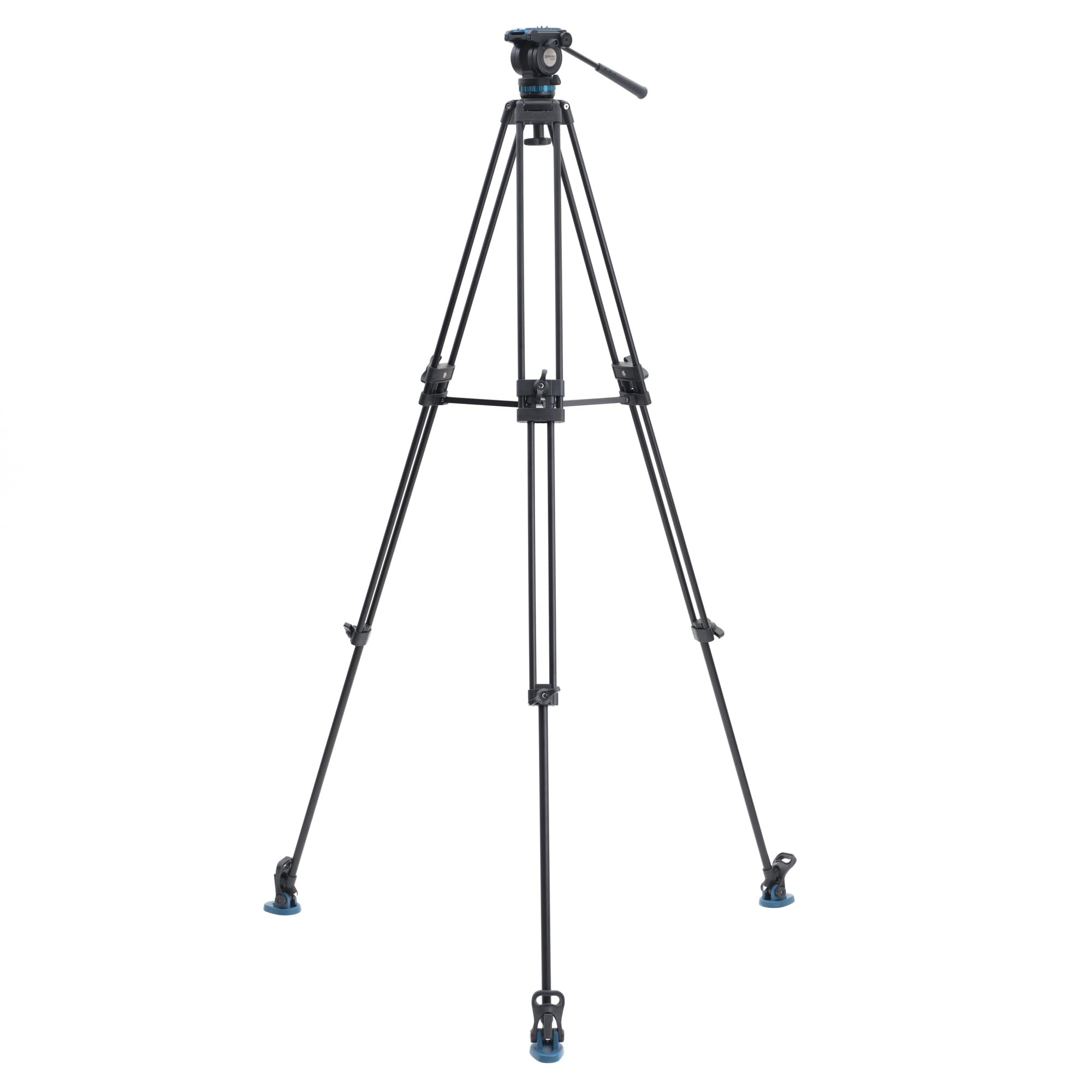 -[Professional Build] 60 mm base bowl, mid-level spreader, twist-lock dual-stage legs, spiked/removable rubber feet, ambidextrous pan handle and padded carrying case included.