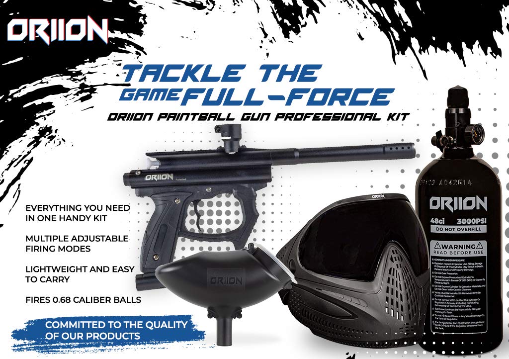 Kit profesional de marcador de paintball ORIION | Pistola de paintball + Máscara de paintball antivaho de alta gama + Tanque de paintball 48CI 3000PSI + Tolva | Kit de pistola de paintball profesional perfecto con accesorios de alta gama