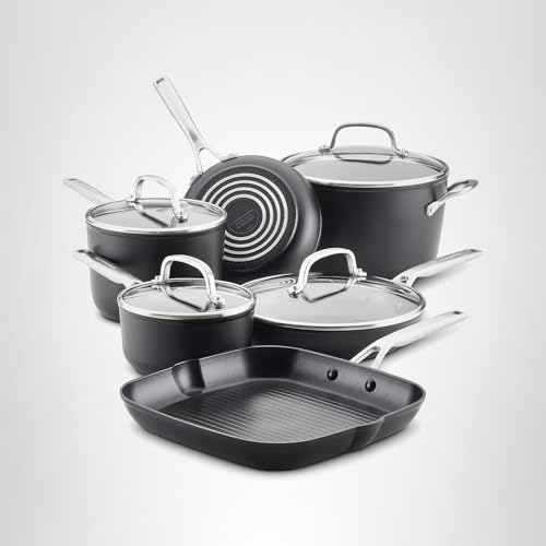 KitchenAid Juego de ollas y sartenes antiadherentes de inducción anodizado duro, 10 piezas, negro m