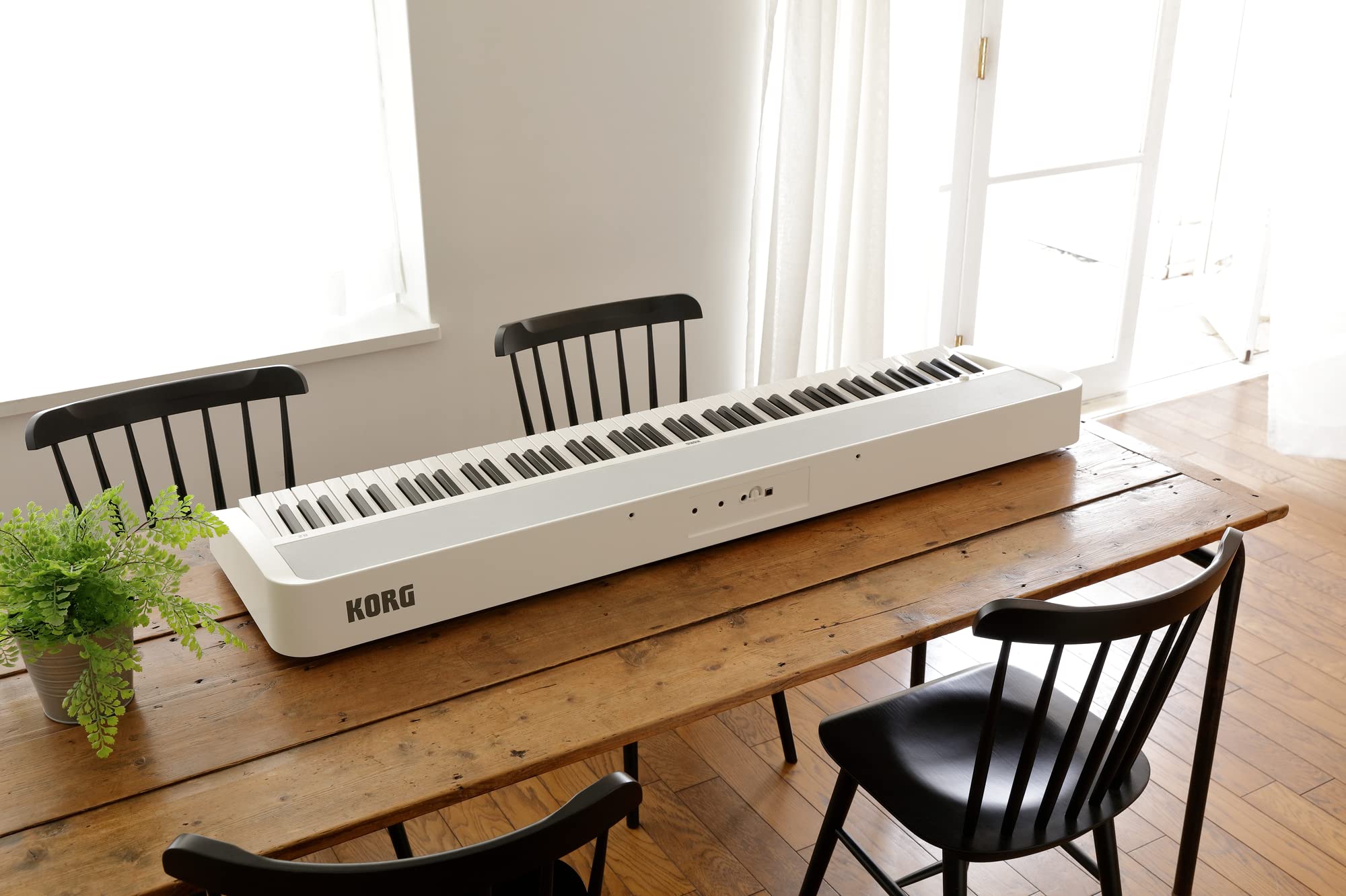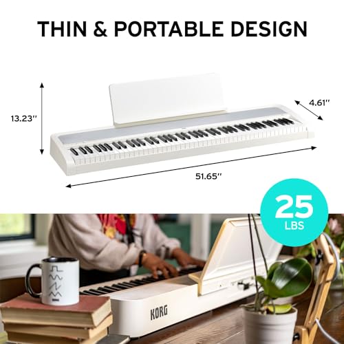 KORG B2 Piano digital portátil con teclado contrapesado de 88 teclas de tamaño completo, parlantes incorporados, atril, pedal de sostenido y fuente de alimentación (B2WH)