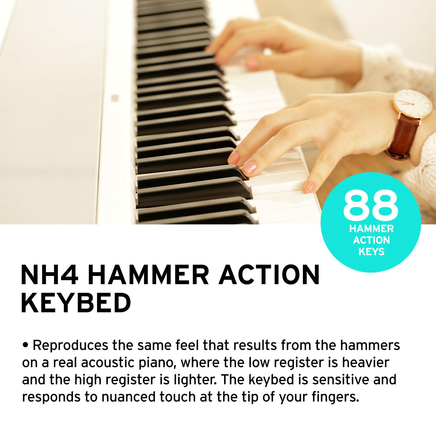 -【Fully-Weighted 88-Key Keyboard】- The B2 88-key digital piano provides a realistic piano playing experience with fully-weighted, hammer-action keybed featuring Korg’s premium NH4 keyboard action, designed in Japan.