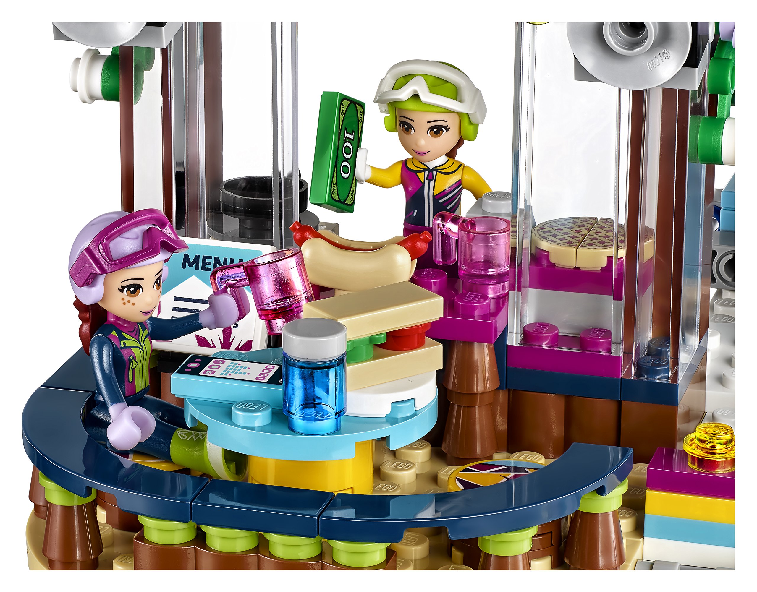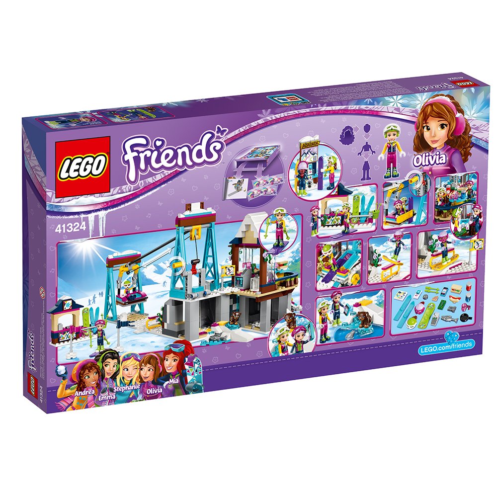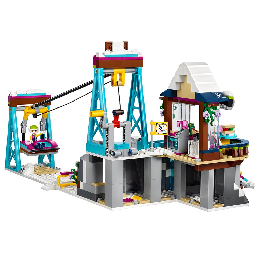 The LEGO Friends snow resort ski lift is the ultimate winter sports resort for the friends from Heartlake City. Enjoy the mountaintop restaurant, working ski lift, ski slope sliding function, rock climbing wall, ski hire stand, trail map and the little bear with his own slope and mountain cave. There are enough activities to keep you busy all winter! includes 2 mini-doll figures, plus a bear cub figure.
