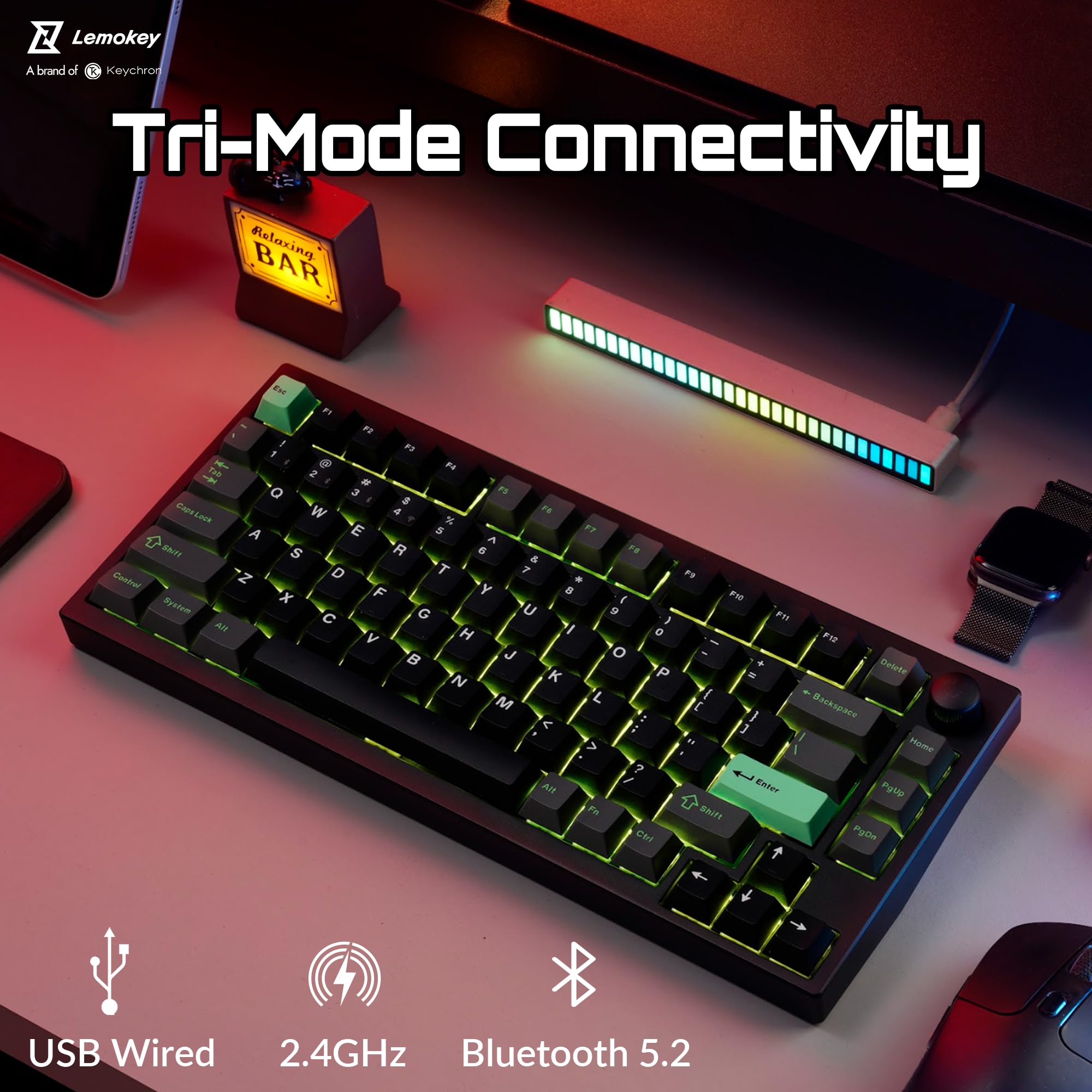 LEMOKEY P1 HE 75% Teclado mecánico inalámbrico personalizado para juegos con interruptores magnéticos de doble riel Gateron Versión de perilla completamente ensamblada - Negro