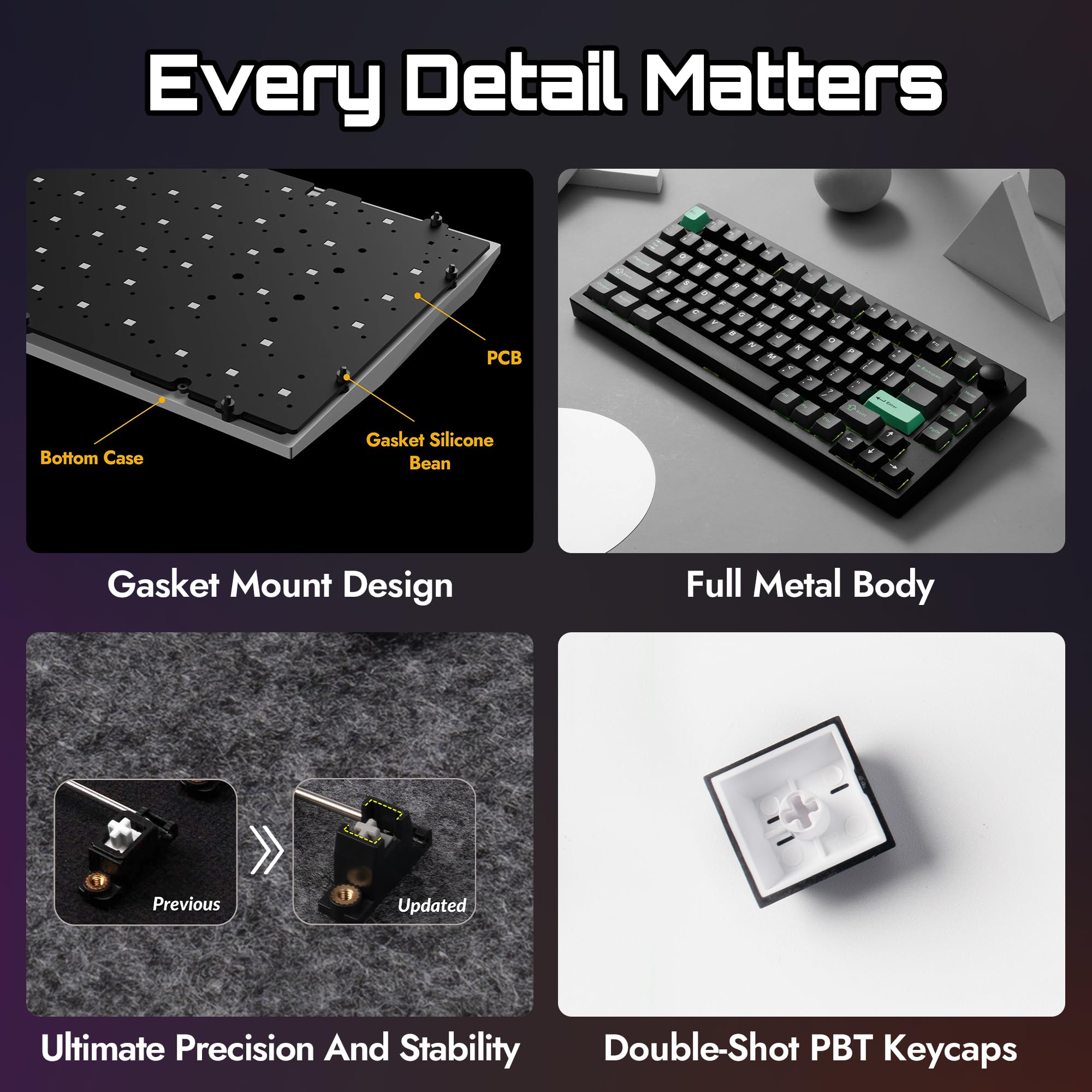 -Precision & Performance: The P1 HE is a 75% wireless magnetic switch keyboard built for speed, accuracy, and control. Featuring Gateron double-rail magnetic switches, a multifunctional knob, gasket mount, acoustic foams, and PBT keycaps, it delivers a top-tier gaming experience.