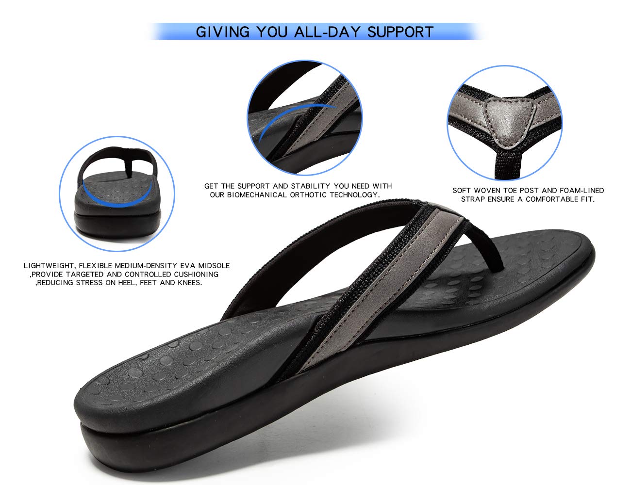 LLSOARSS Sandalia para pies para fascitis plantar con soporte para el arco, las mejores chanclas ortopédicas para pies planos, dolor en el talón, para mujeres