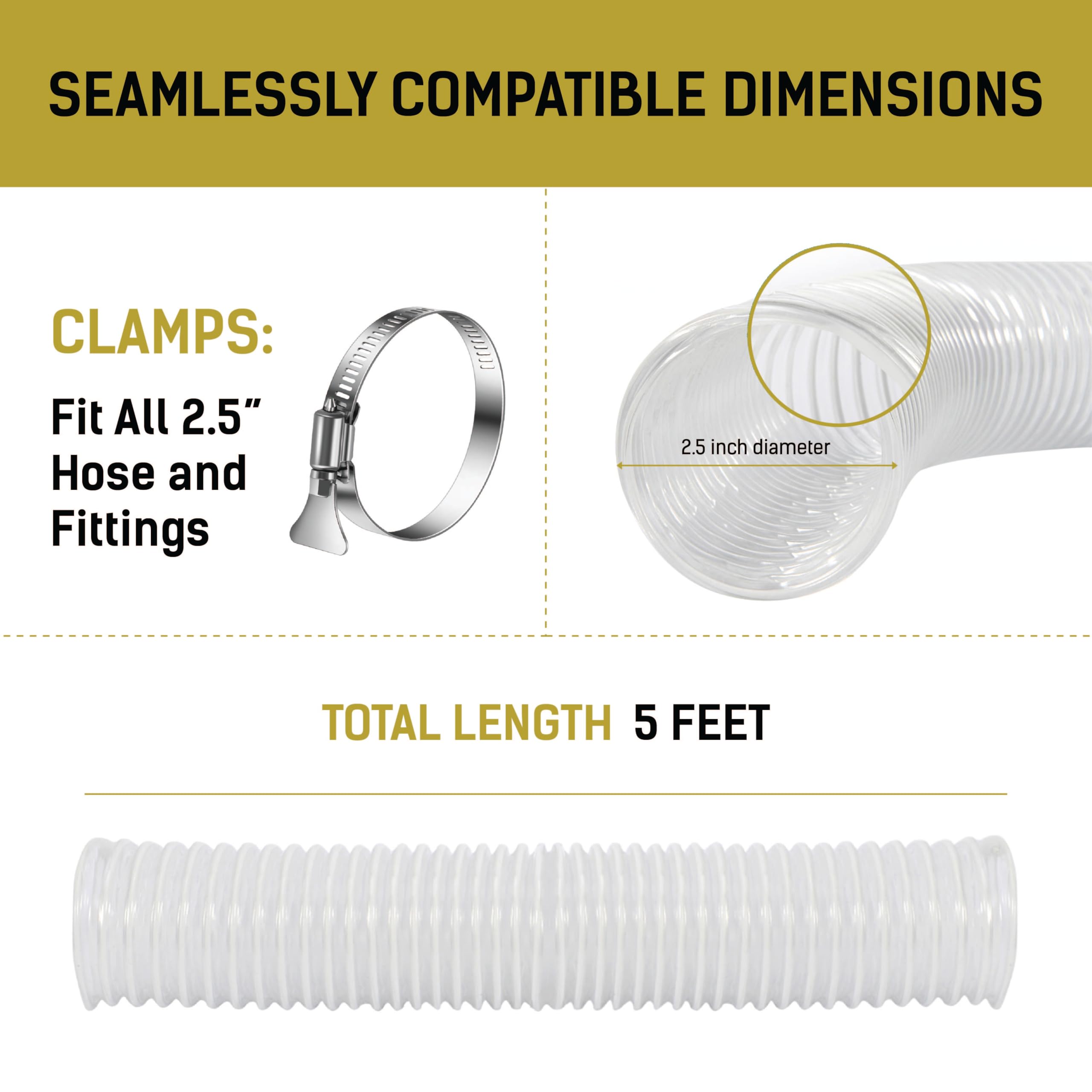 Manguera de recolección de polvo de 2.5 pulgadas x 5 pies – Mangueras flexibles de PVC transparente de grado contratista resistentes a perforaciones para desechos de polvo y humos – Revestimiento de alambre reforzado con hélice – Incluye abrazaderas Manguera de recolección de polvo de 2.5 pulgadas x 5 pies – Mangueras flexibles de PVC transparente de grado contratista resistentes a perforaciones para desechos de polvo y humos – Revestimiento de alambre reforzado con hélice – Incluye abrazaderas