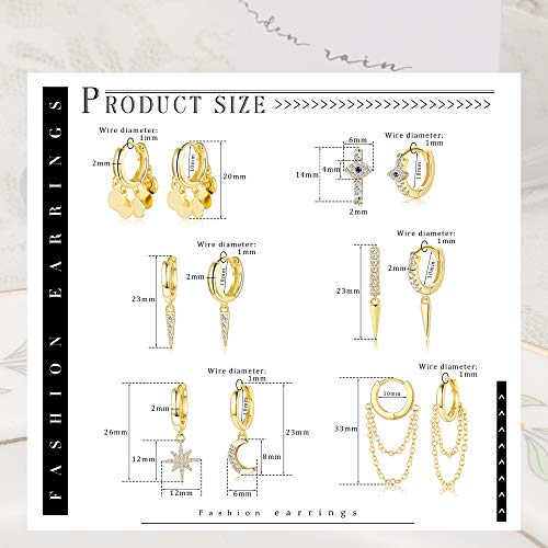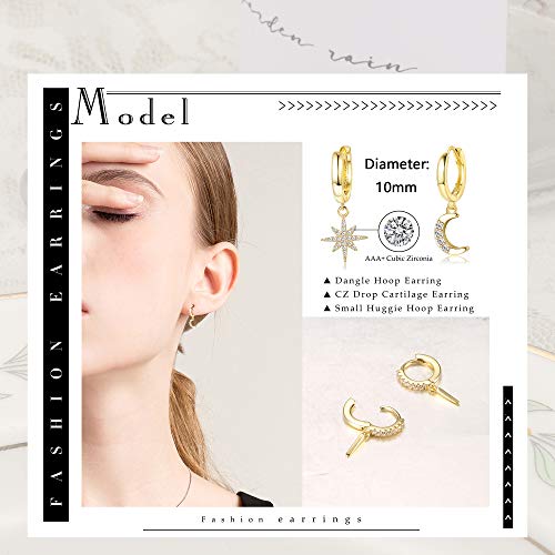 - Huggie Hoop Dangle Earrings-An order contains 6 pairs of earrings of different styles, including star and moon earrings, small disc hoop earrings, evil eye earrings, spike pendant earrings, multiple hinged tassel earrings, giving you a variety of choices and bringing you different freshness every day. - High Quality Material-Three different colors 316L Stainless steel post pin dangle cartilage earring set,AAAAA cubic zirconia, shiny & sparkly,advanced plating process.Lead-free,nickel free.Easy to adjust. Convenient to put on and take off.Small and light, easy to carry. - Dangle Hoop Earrings-Our earrings are designed by foreign senior designers, using fashionable devil eyes and spike elements, blending into classic small disc elements, chic design,stylish and trendy, no age limited, perfect polishing and exquisite side details, shows beauty of cz from more angles. - Best Gift-These huggie hoop earring are nice gifts choice to yours,you can send to your mother,sister,friends,classmate.Perfect for almost all occasions:Birthday,Anniversary,Holidays,Graduation,Christmas,Valentine's Day etc. - After-Sale Warranty-We provide 90 days money back or exchange guarantee. Any problems about the product, please let me know, you will get a better solution.