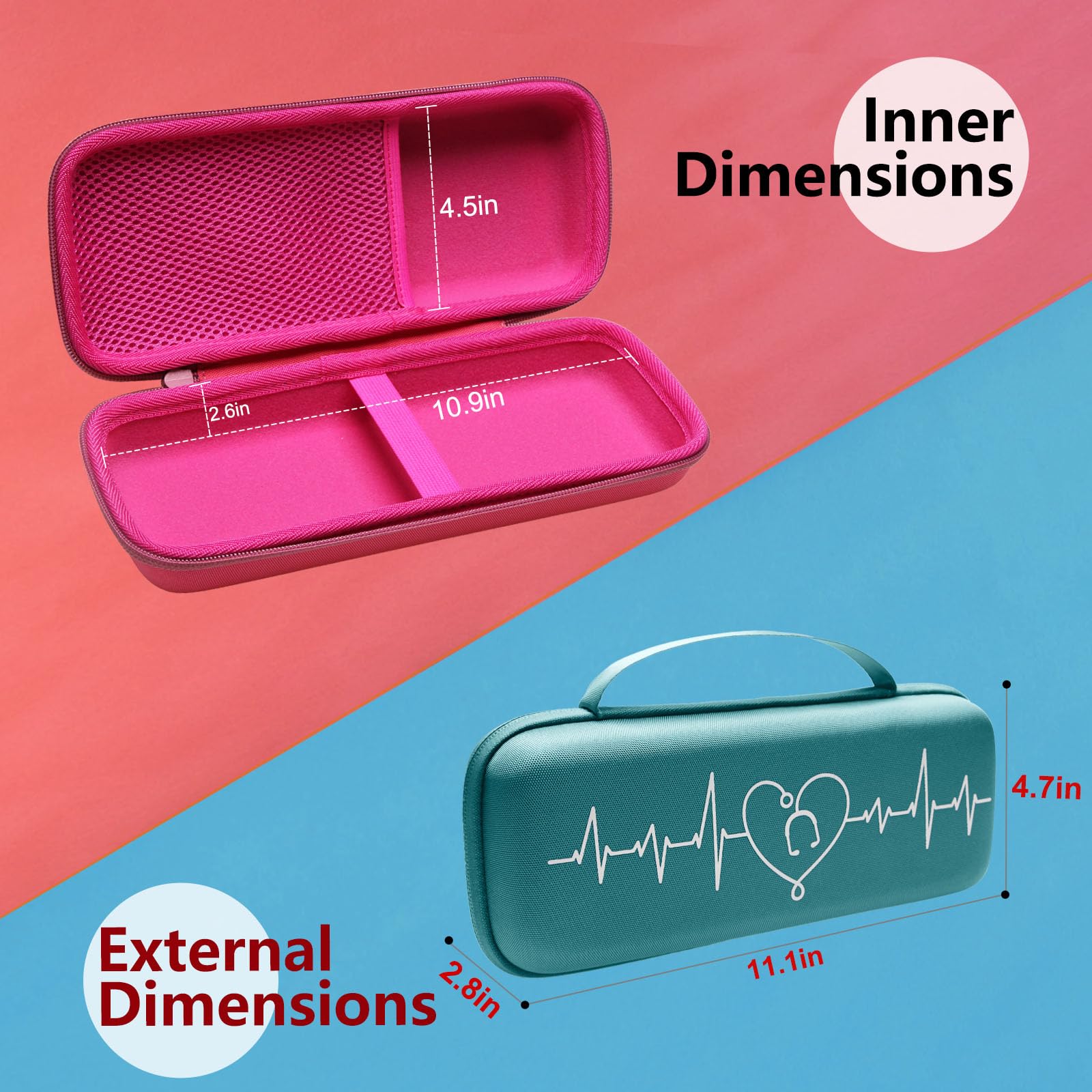 LTGEM Estuche para estetoscopio para 3M Littmann Cardiology III, II, IV, 3M Littmann Master Cardiology/MDF MDOne Estetoscopio de acero inoxidable Accesorios de enfermera y equipo médico (exterior negro+interior negro)