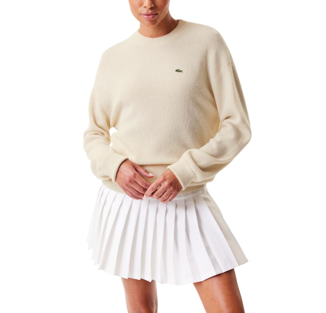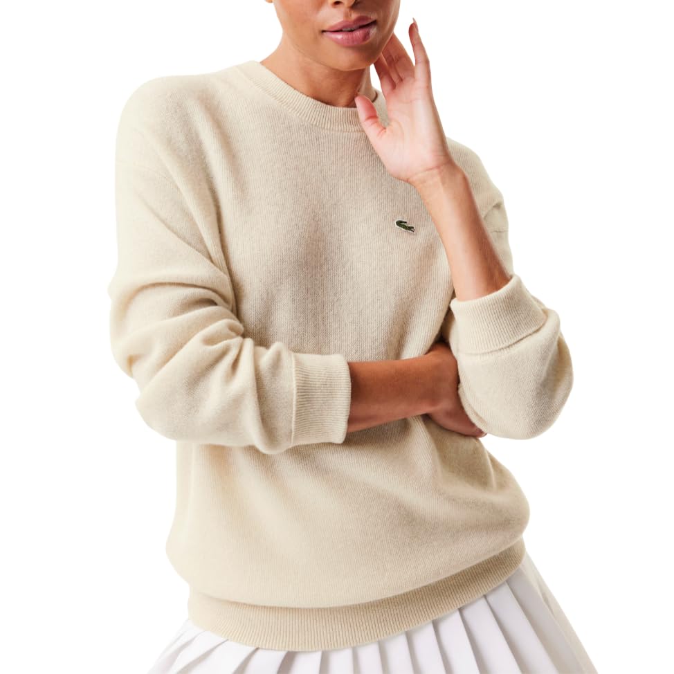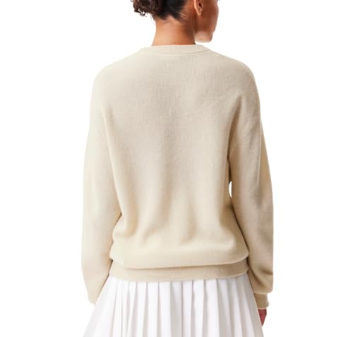 Lacoste Jersey de Cachemira con Cuello Redondo para Mujer, Crema, 42