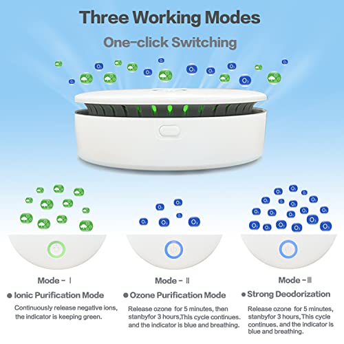 -【Multiple Working Modes】Three working modes can be selected by pressing the button: negative ions fresh air, ozone purification and strong deodorization. Simple operation and automatic cycle work.