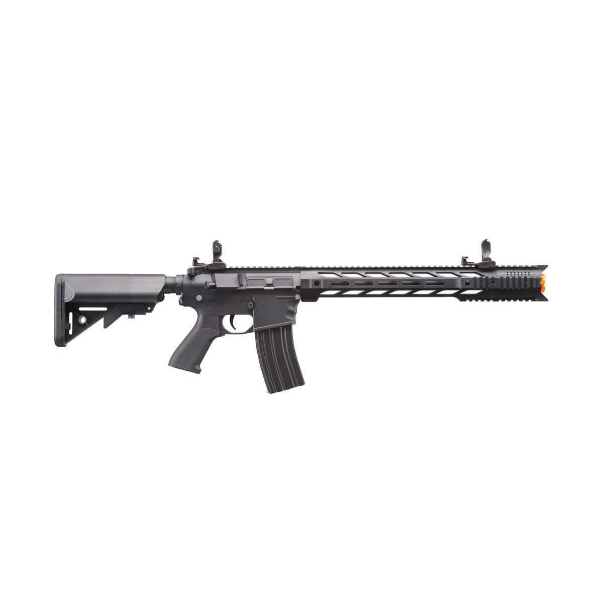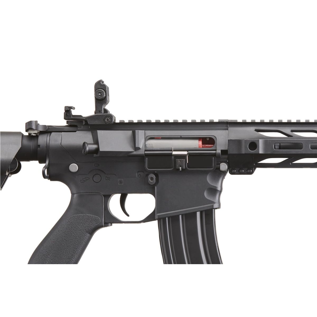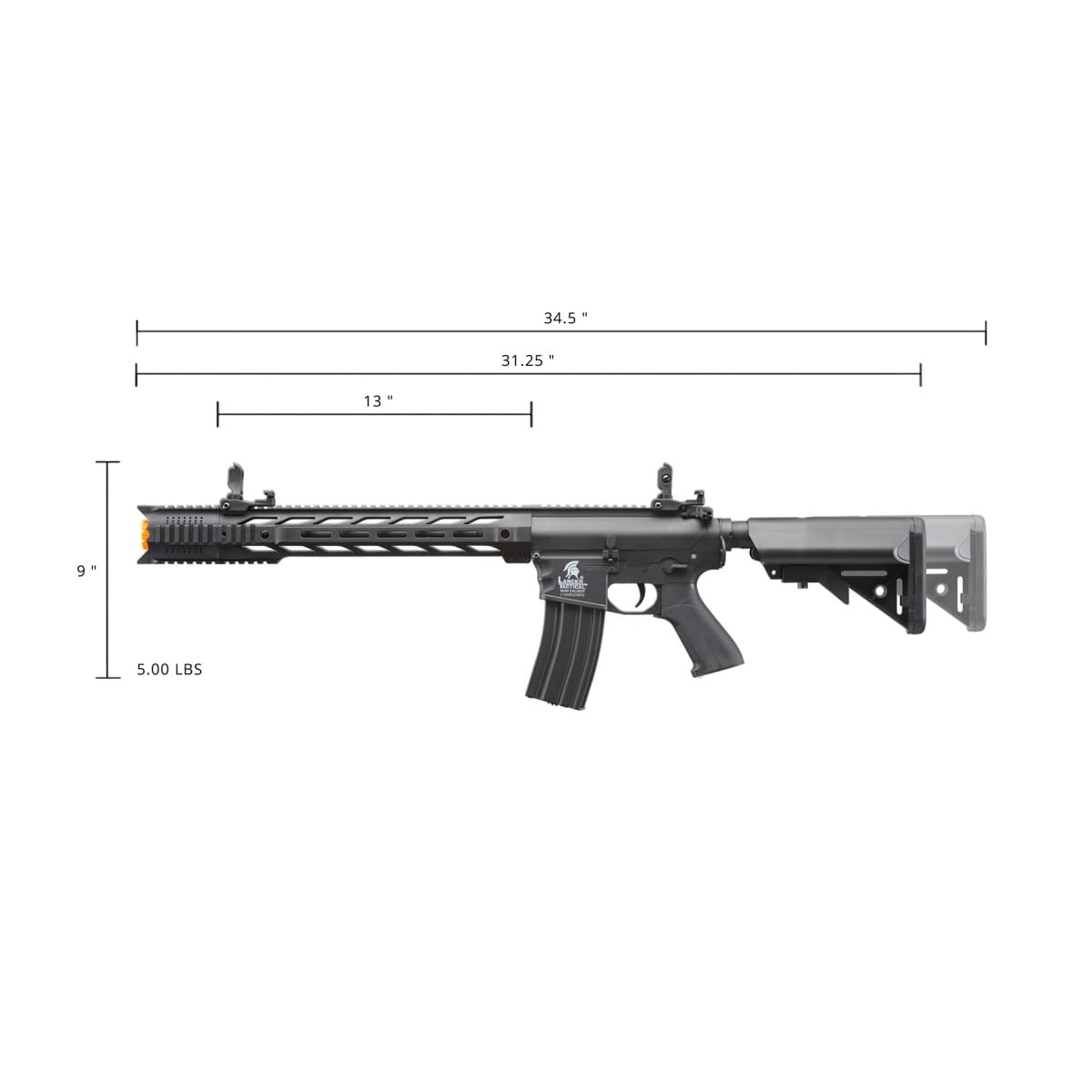 -Lightweight polymer receivers and handguard reduces player fatigue.