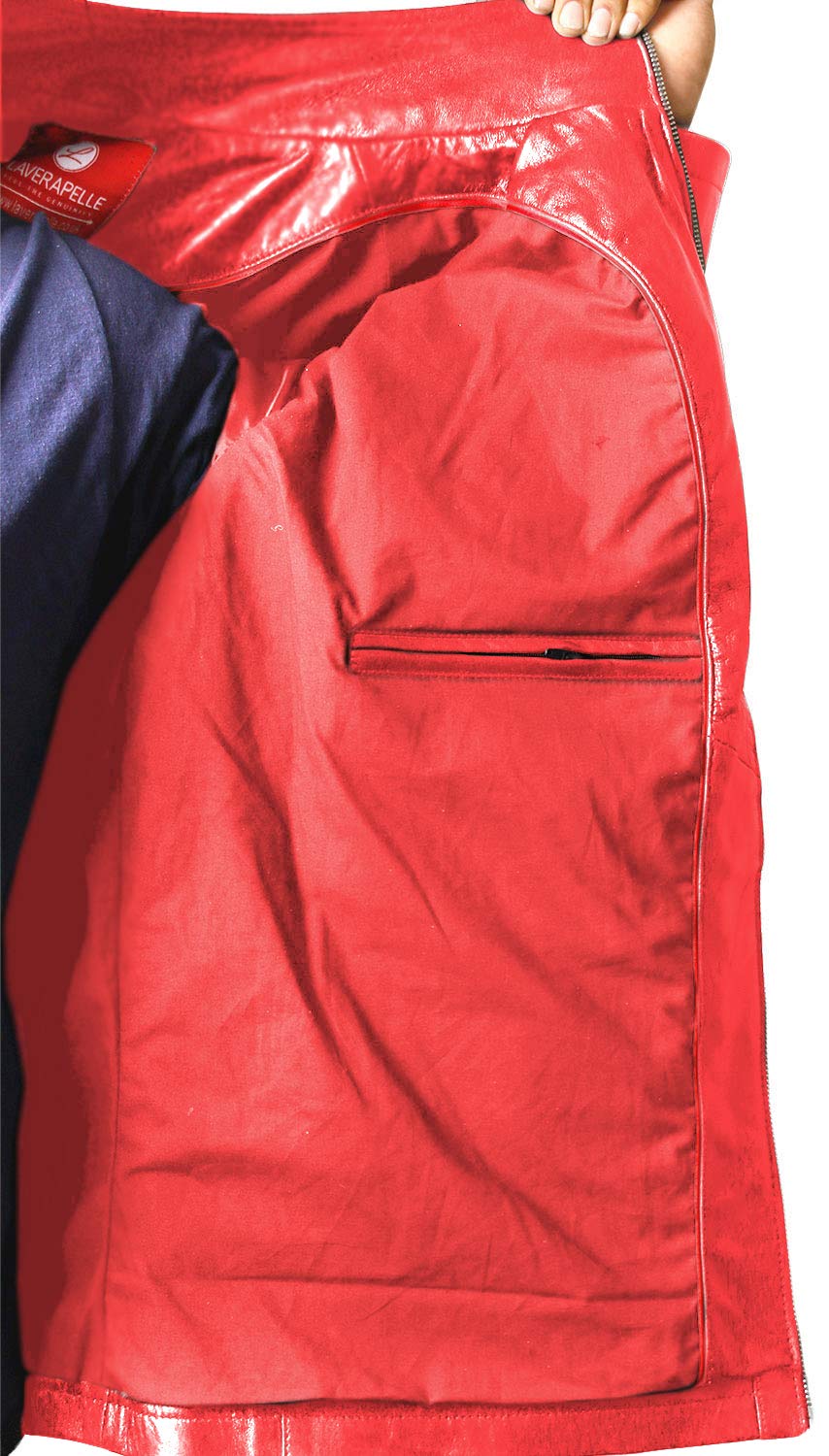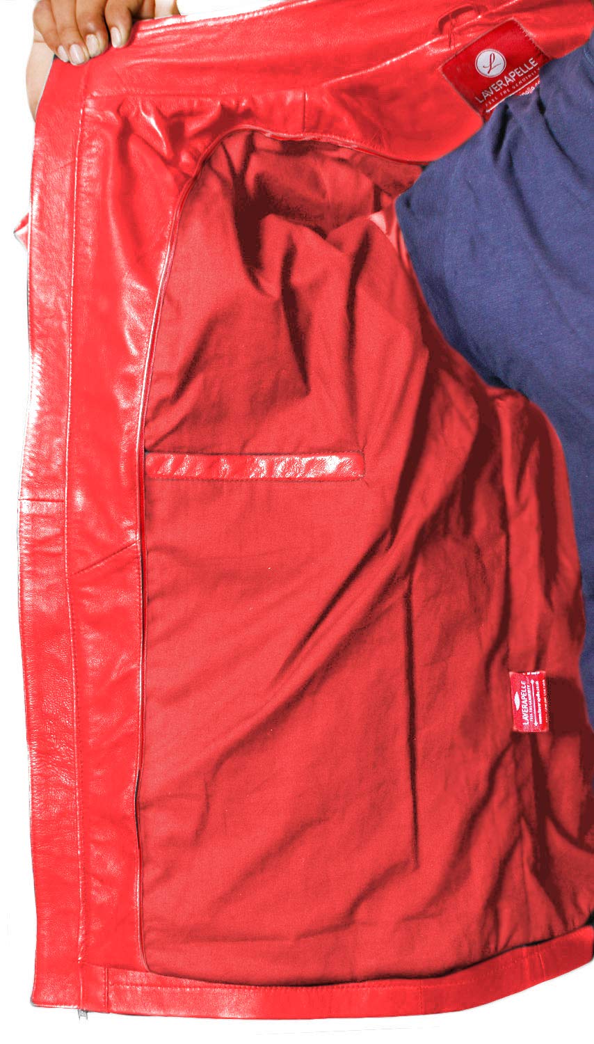 Chaqueta de cuero de piel de cordero genuina de Laverapelle (rojo, mediano, color de algodón) - 1501272