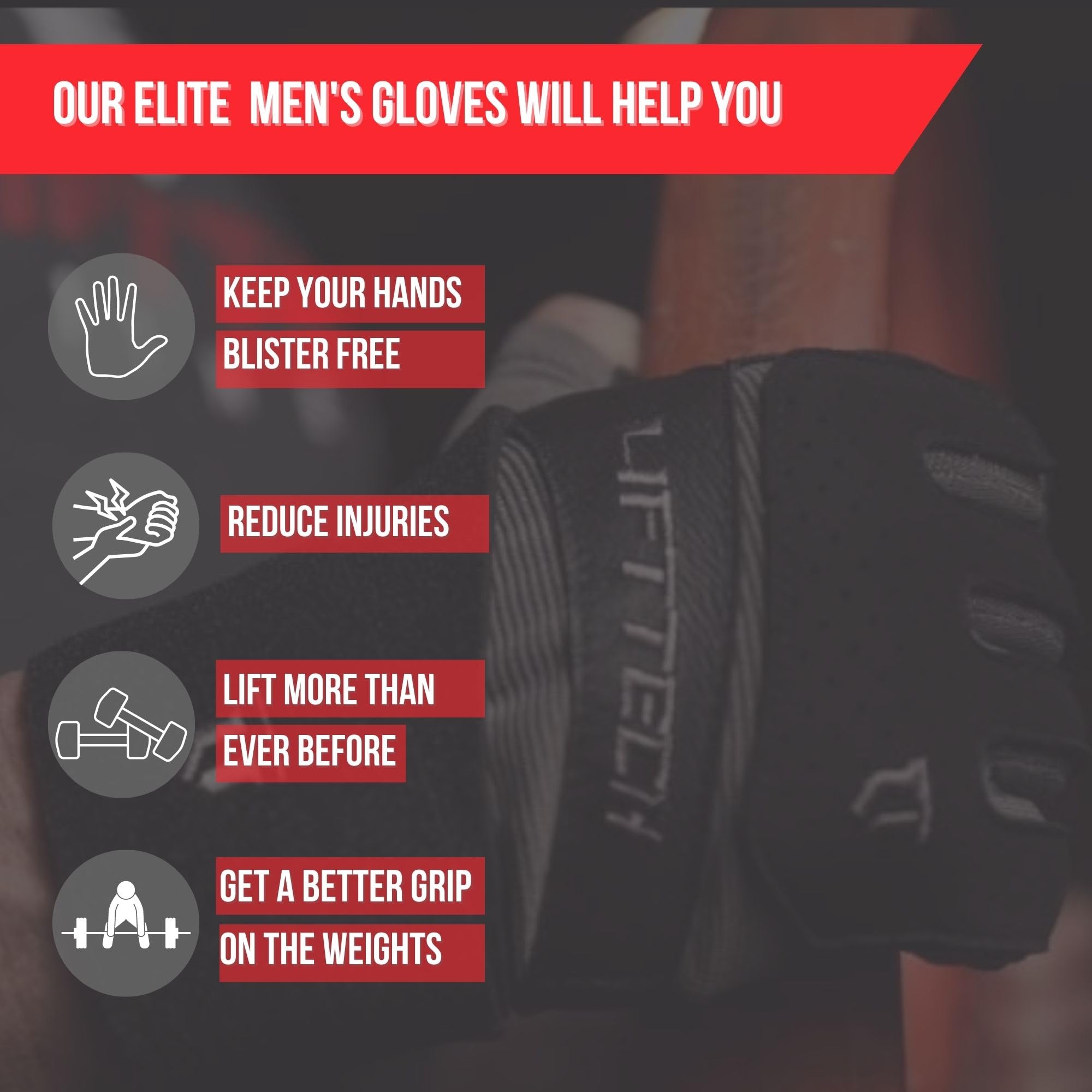 Lift Tech Men's Klutch Guantes de levantamiento de pesas con soporte de muñeca - Guantes de levantamiento de pesas para hombres en pesas, entrenamiento de fuerza, levantamiento de potencia - guantes de soporte de muñeca - Black & Silver - XXL