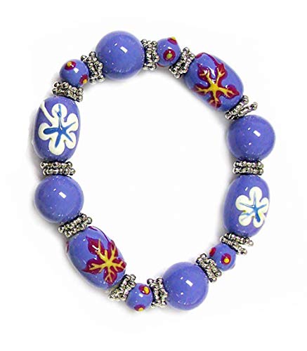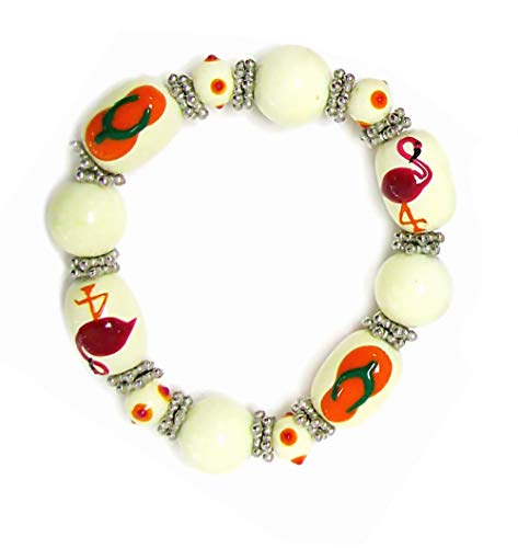 Linpeng BR-1356/57/90 Juego de pulseras elásticas con cuentas de vidrio pintadas a mano de estilo Fiona Hawaii de 3 piezas