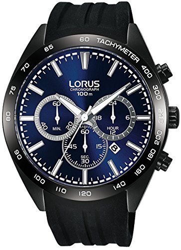 Lorus mens watch. Black stainless-steel case and black Silicone strap. Blue dial. Quartz movement. B.....