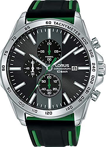 Lorus mens watch. Silver stainless-steel case and black Silicone strap. Black dial. Quartz movement......