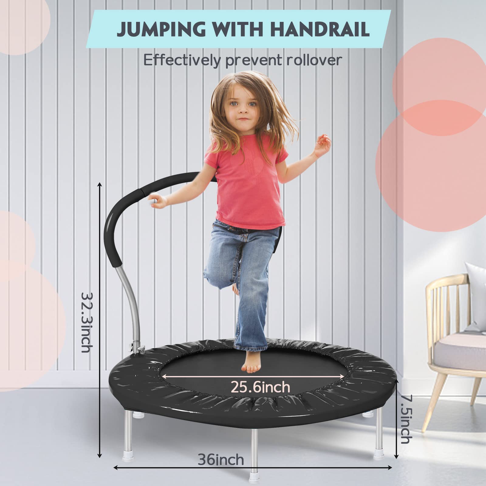 Lyromix Trampolín infantil de 36 pulgadas para niños pequeños con asa, mini trampolín reboteador