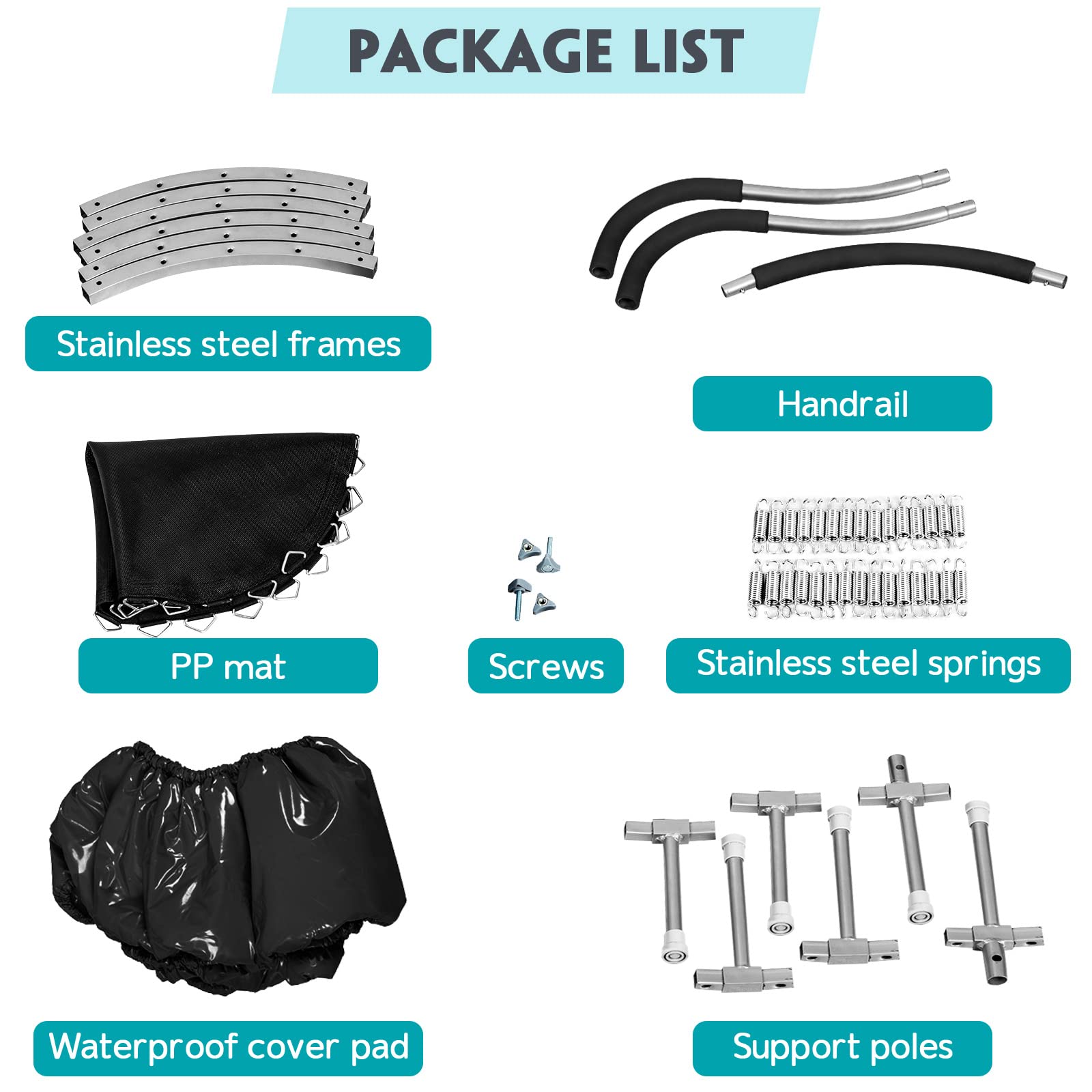 -[ Safety is Our Prior ] Our mini trampoline for kids is designed with a safety handrail with soft foam cover and can effectively avoid rollover, and additional 6 legs for extra protection and stability