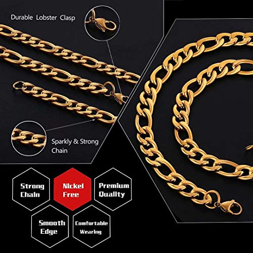 - MATERIAL: Gold figaro link chain, premium 316L stainless steel. Lead free and nickel free, hypoallergenic gold chain has no irritation for skin, no tarnish. Robust and solid.