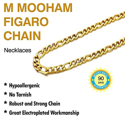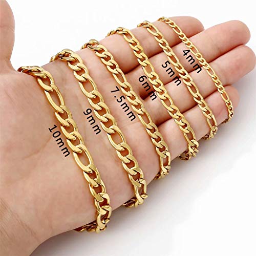 M MOOHAM 4MM 5MM 6MM 7MM 9.5MM 10MM Collar de cadena Figaro de acero inoxidable chapado en oro negro plateado para hombres y mujeres de 16 a 36 pulgadas