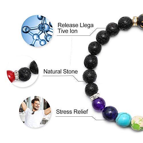 - MATERIAL: Natural lava rock and chakras bead, come with a easy to store flannelette gift box. Chakras possess low density and light weight. Its cool feeling in hands can make the anxiety calm down. Suit for men and women.