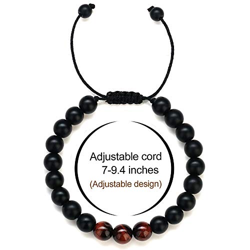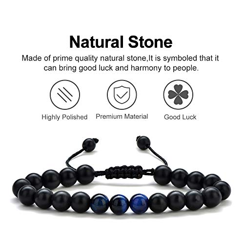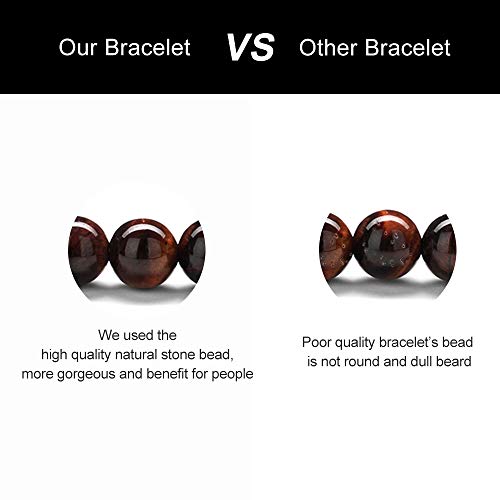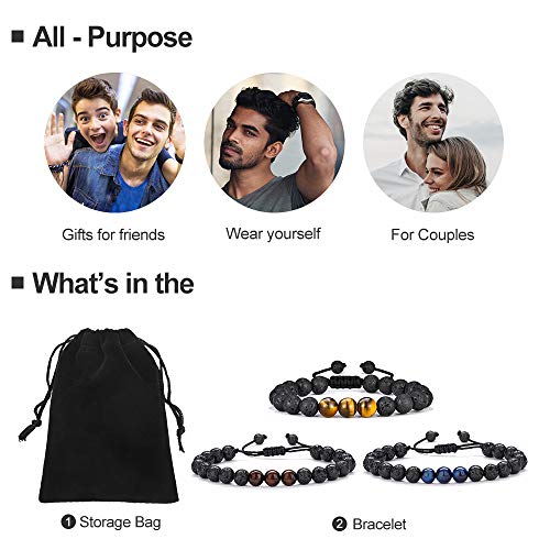 - ESSENTIAL OIL DIFFUSER BRACELET: Lava rock stone can absorbing your favorite Essential oils well, just drop a little your favorite essential oils on the lava rock stone bracelet, the scent will last all the day on the volcanic stone. Help with meditating and healing you. Or as a gift for your family, friends and so on. - SIZE: This lava rock stone bracelet with adjustable cord, inner length is from 6.7 inches to 9.4 inches. Suitable size lava rock bracelet for men and women wearing. The real volcanic bracelet wont change the PH of water like us, fake lava stone beads will increase the PH into 8.4 - MATERIAL: Natural black lava rock stone and tiger eye stone, come with a easy to store flannelette gift bag. Natural stone bead possess low density and light weight. Its cool feeling in hands can make the anxiety calm down. - TIGER EYE BRACELET: Natural tiger eye women mens bracelet is a perfect bracelet jewelry accessory for any occasion to change your style and mood. Long time adorning the natural stone bracelet is benefit for your anxiety and stress. - Tiger eye have a power of emotional clearing and keeping things energetically balanced. Historically, these stones were always worn as amulets among the ancient civilians. There are many benefits of understanding bead bracelet, meditate and yoga can make the anxiety calm down and heal yourself.
