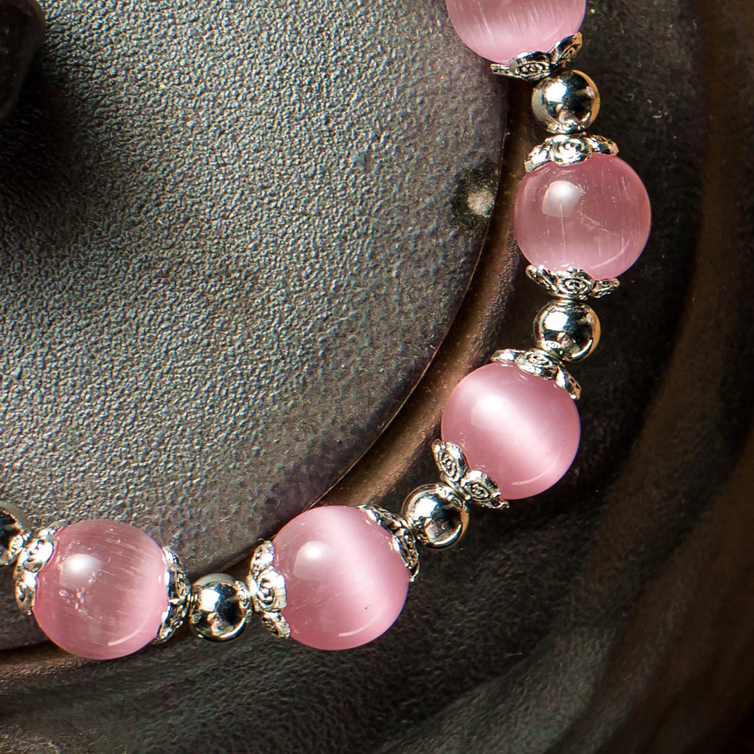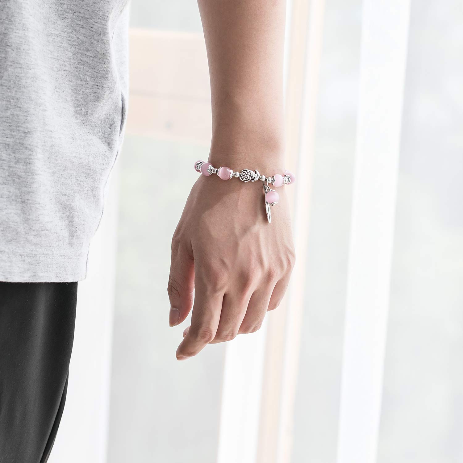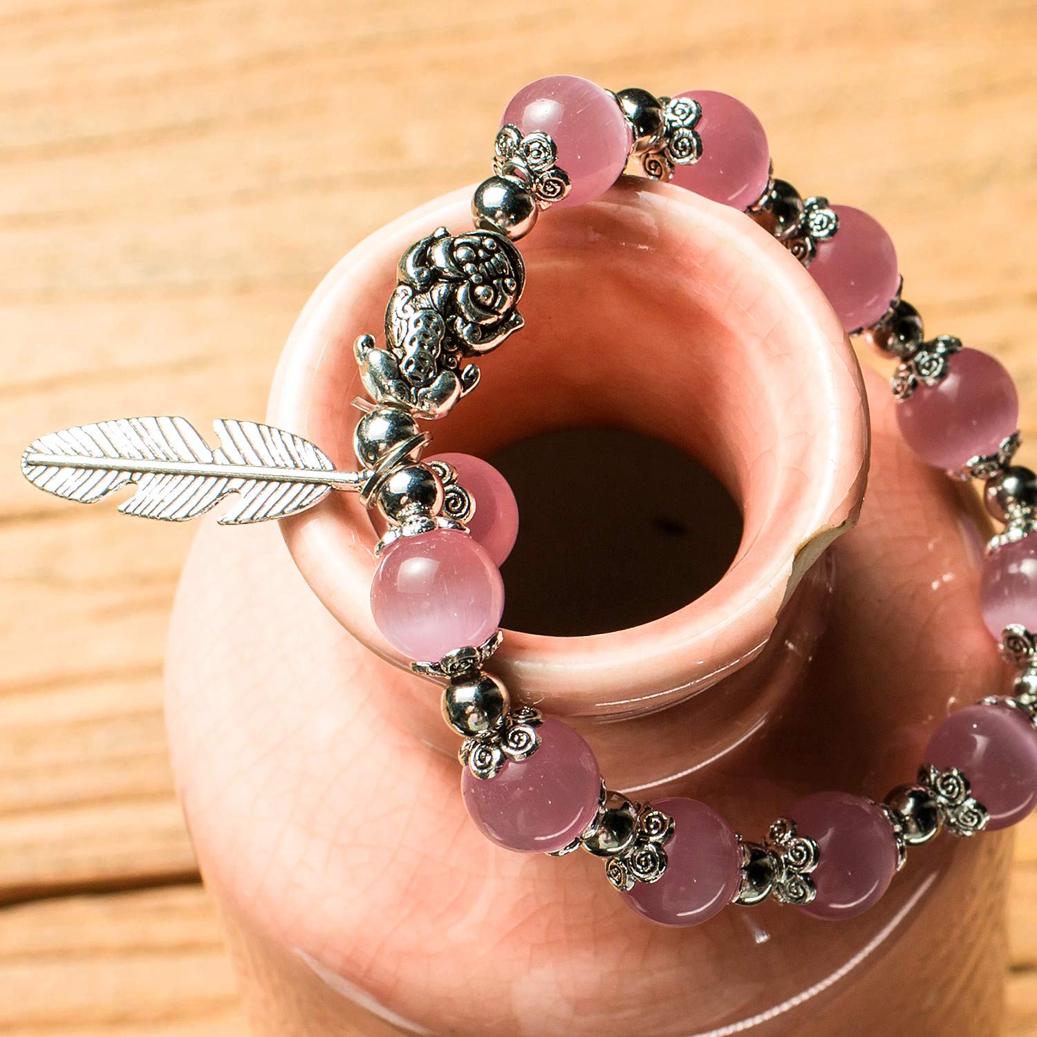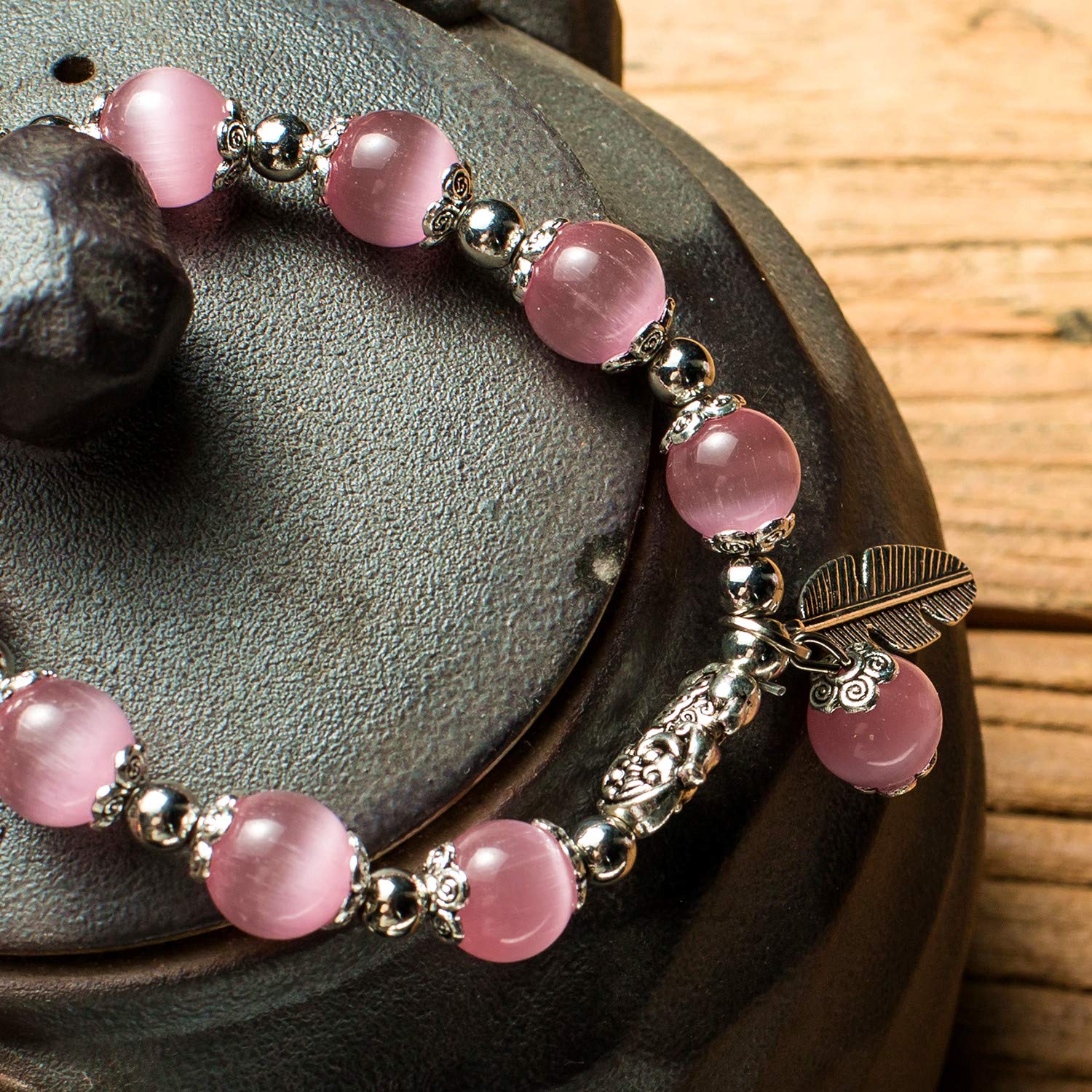 Feng Shui La mejor pulsera de cuentas de ojo de tigre natural de 0.394 in con colgante de Pi Xiu/Pi Yao chapado en plata para atraer a los ricos afortunados (rosa)