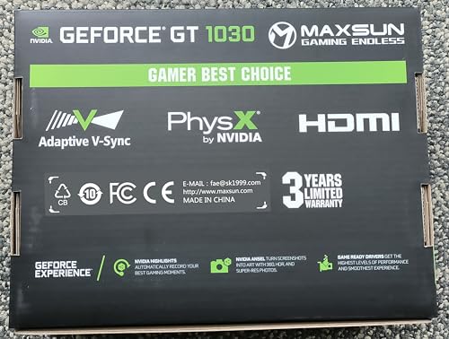 Maxsun GeForce GT 1030 2GB GDDR5 Tarjeta de gráficos de video GPU Mini ITX Diseño, nueva arquitectura y rendimiento rápido que 2GD4, HDMI, DVI-D, Sistema de enfriamiento de ventilador único