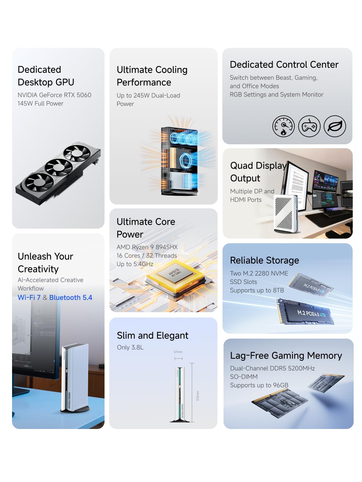 MINISFORUM G1 Pro Mini PC Gaming, Ryzen 9 8945HX, 16C/32T hasta 5,4GHz, GeForce RTX 5060 8GB GDDR7,32GB DDR5, 1TB SSD, 5GbE, Wi-Fi 7, Quad 4K, Escritorio compacto de rendimiento de 245W MINISFORUM G1 Pro Mini PC Gaming, Ryzen 9 8945HX, 16C/32T hasta 5,4GHz, GeForce RTX 5060 8GB GDDR7,32GB DDR5, 1TB SSD, 5GbE, Wi-Fi 7, Quad 4K, Escritorio compacto de rendimiento de 245W MINISFORUM G1 Pro Mini PC Gaming, Ryzen 9 8945HX, 16C/32T hasta 5,4GHz, GeForce RTX 5060 8GB GDDR7,32GB DDR5, 1TB SSD, 5GbE, Wi-Fi 7, Quad 4K, Escritorio compacto de rendimiento de 245W MINISFORUM G1 Pro Mini PC Gaming, Ryzen 9 8945HX, 16C/32T hasta 5,4GHz, GeForce RTX 5060 8GB GDDR7,32GB DDR5, 1TB SSD, 5GbE, Wi-Fi 7, Quad 4K, Escritorio compacto de rendimiento de 245W