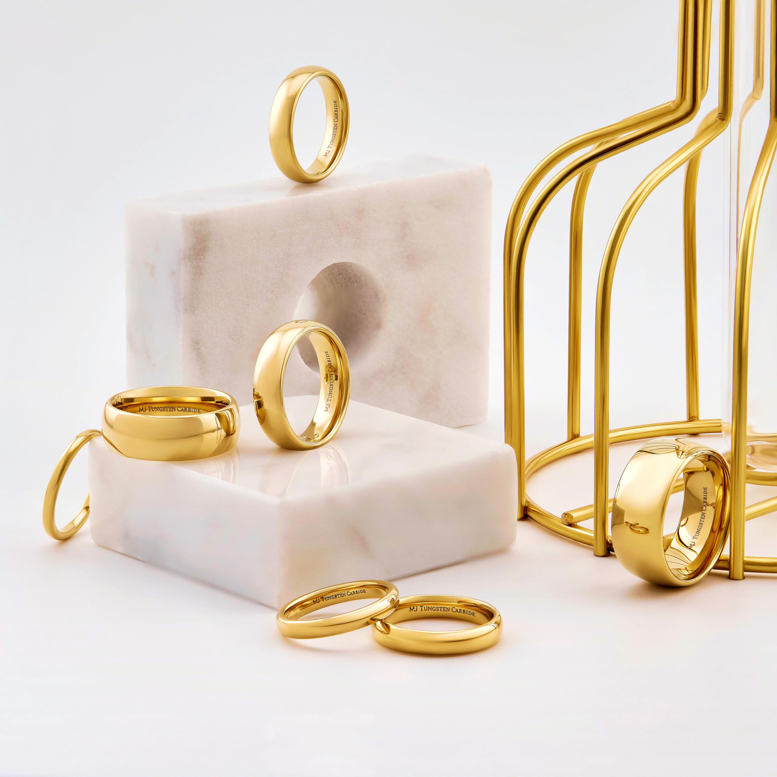 MJ Metals Jewelry Anillos clásicos chapados en oro de media cúpula para mujeres y hombres | Múltiples anchos disponibles | Circonita cúbica opcional | Alianza de boda de carburo de tungsteno de ajuste cómodo de alto pulido