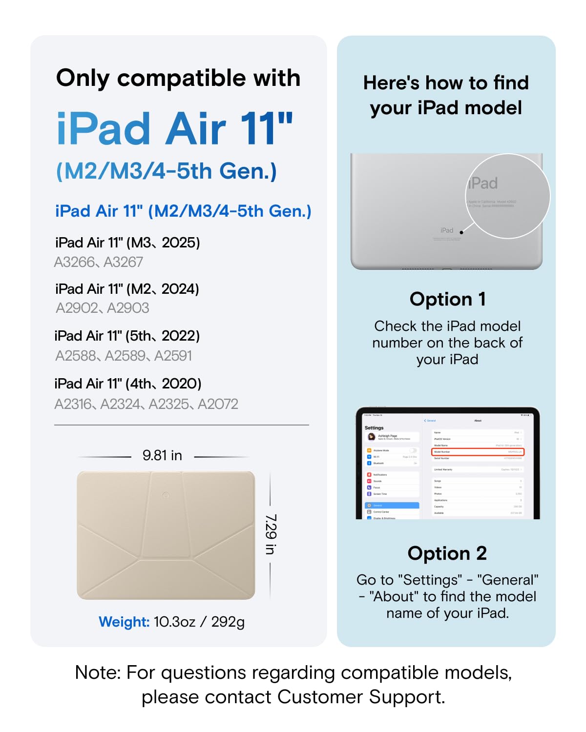 -Compatibility - Exclusively compatible with iPad Air 11"(M3 2025/M2 2024) & iPad Air 10.9"(5th 2022/4th 2020)(Model: A3266, A3267, A2902, A2903, A2588, A2589, A2591, A2316, A2324, A2325, A2072). Note: It will not be compatible other model. Please check your iPad model before purchase. For questions about compatible models, please feel free to contact us.