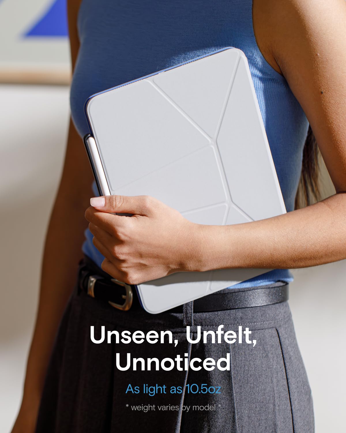 -As Light As 10.3oz - Like a thin yet powerful sheet of paper wrapping around your iPad, this folio offers effortless protection and versatile angles - perfect for any scene without the added bulk, all at just 10.3oz. (Weight varies by model)