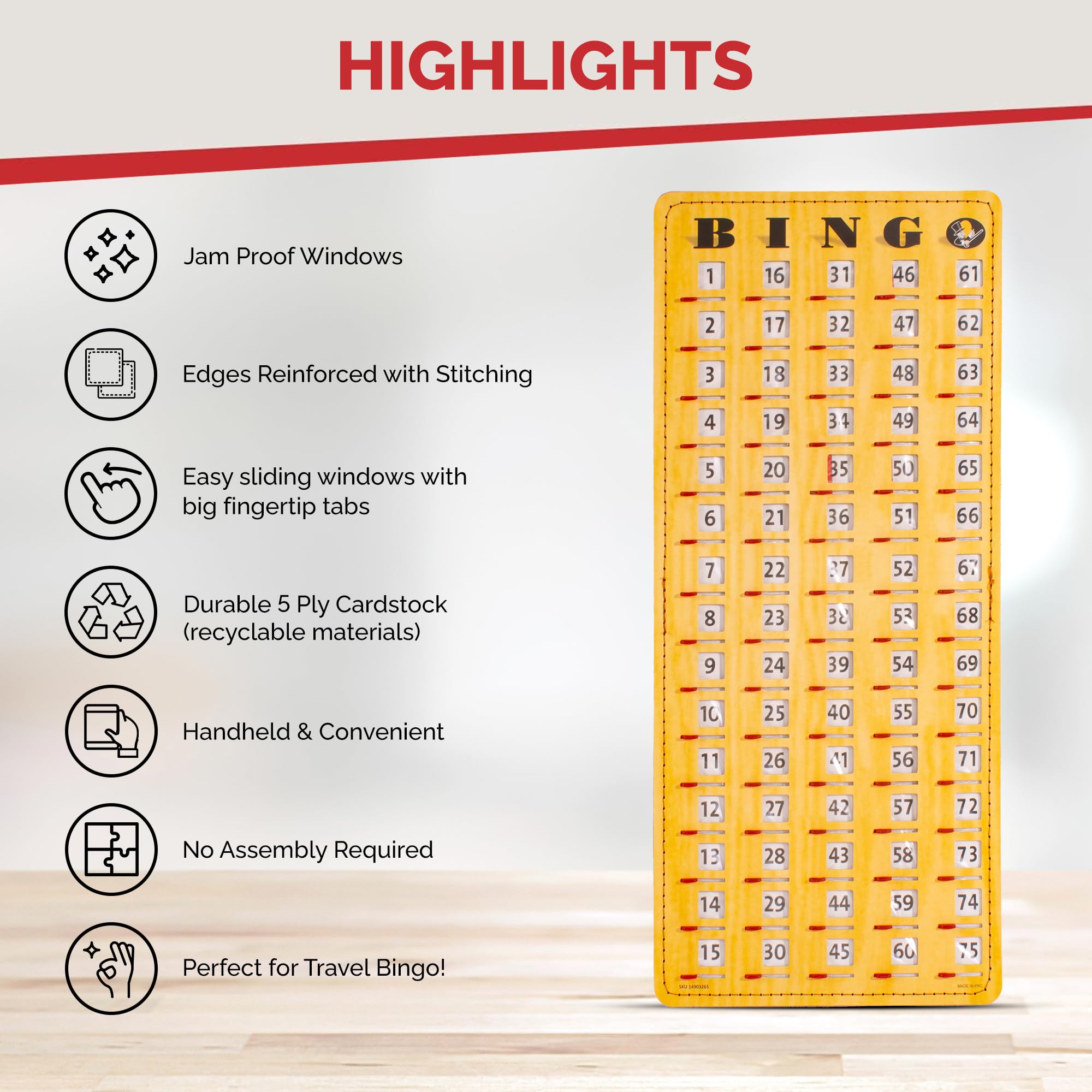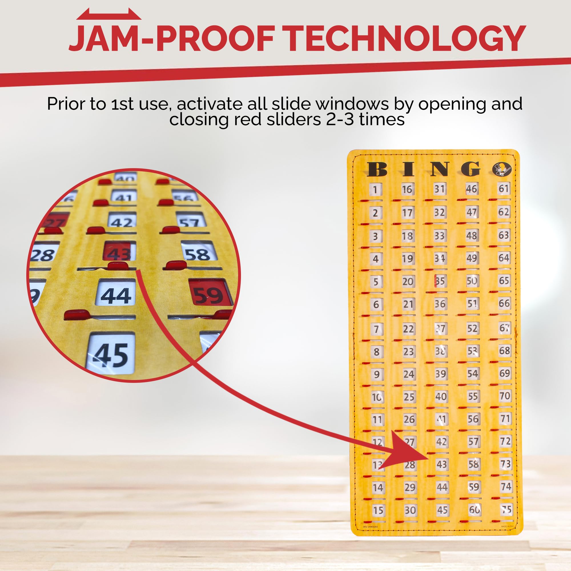 -NO MORE JAMMED SLIDE WINDOWS: Introducing our proprietary technology jam-proof bingo slide cards featuring smooth, easy-move slider windows that are effortless to move while tracking your bingo game and the called numbers