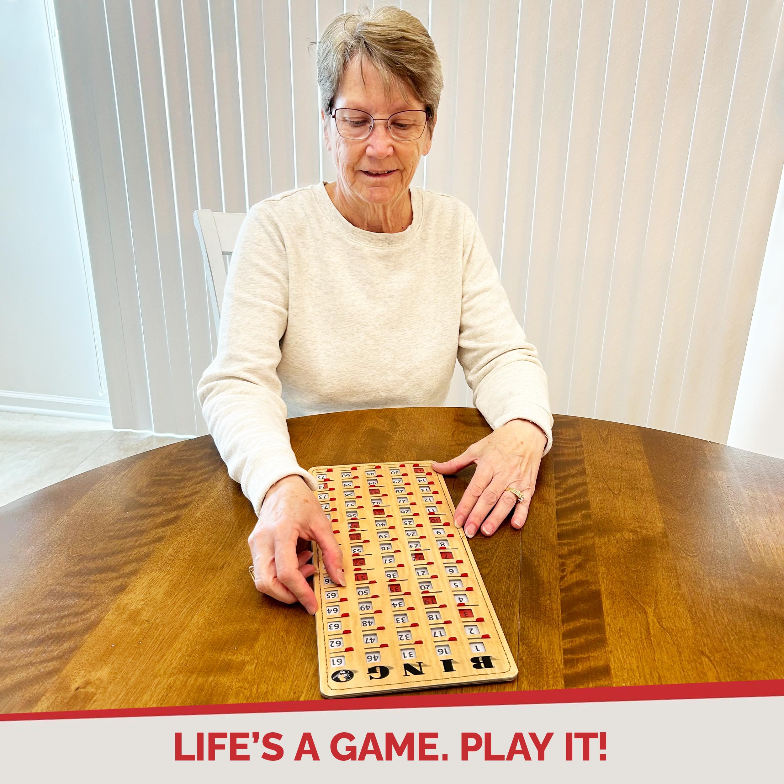 -TRACKING BINGO GAMES IS SO SIMPLE: Unlike others bingo shutter board brands, our durable and prominent sliding window tabs will not move out of position while playing, so you can enjoy a fun, accurate and hassle-free bingo game with family and friends