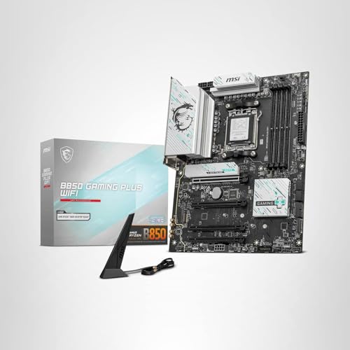 B850 GAMING PLUS WIFI: Win the Competition Designed for efficient and stable performance on the AMD B850 chipset (Ryzen 9000 / 8000 / 7000 supported, AM5), the MSI B850 GAMING PLUS WIFI motherboard includes premium GPU support with a PCIe 5.0 x16 slot, improved DDR5 memory support (8200+ MT/s OC), and extensive M.2 Gen5 storage options (with EZ M.2 Shield Frozr II). To power the latest Ryzen 9000 processors, the B850 GAMING PLUS WIFI is equipped with a 12 Duet Rail Power System (P-PAK) VRM for the CPU and dual 8-pin CPU power connectors, augmented with multiple passive cooling features. MSI gaming motherboards feature durable server-grade PCBs with 2oz of thickened copper and all-new Surface Mount Technology (SMT) solder welding for improved signal clarity. Connectivity includes full-speed Wi-Fi 7 and Bluetooth 5.4 technology, Realtek 5G LAN, USB 10Gbps Type-C, 4K/60Hz display support, and 7.1 HD audio. For gamers looking for an efficient AMD Ryzen 9000 / 8000 / 7000 platform that unites PCIe 5.0 x16 graphics card architecture, improved DDR5 support, and M.2 Gen5 storage options into one elegant design, the MSI B850 GAMING PLUS WIFI gaming motherboard is the perfect choice.