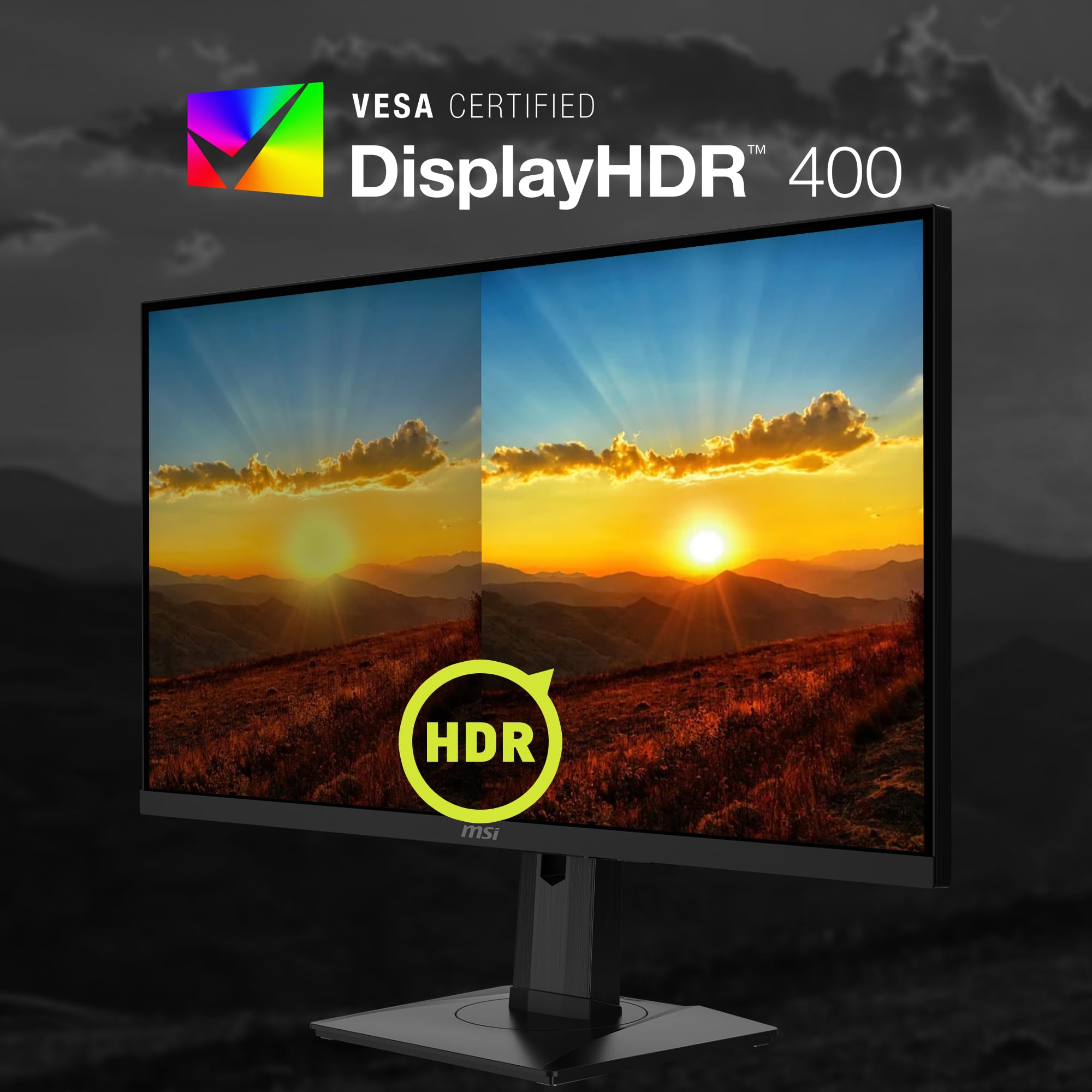 msi MAG274UPF, 27" 3840 x 2160 (UHD), 4K Rapid IPSGaming Monitor, 1 ms, 144Hz, FreeSync Premium, HDR400, Compatible con G-Sync, HDMI, DisplayPort, Inclinación, Giro, Pivote y Altura Ajustable.,Negro