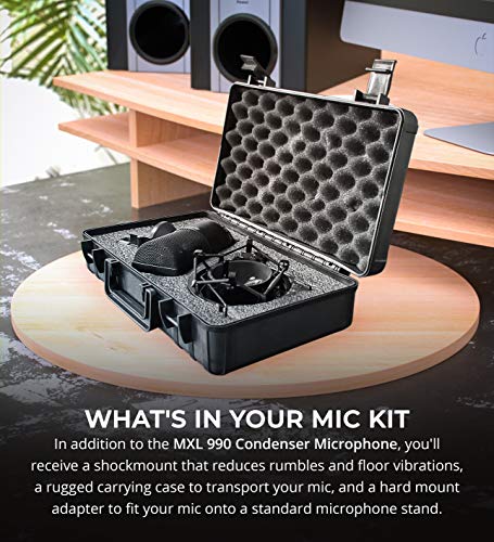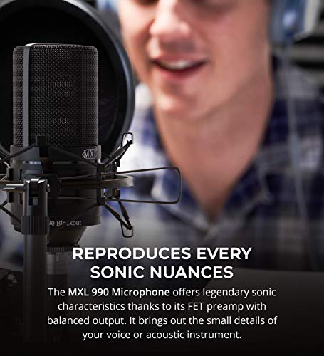 Product Description The MXL 990 remains one of the industry's most ground-breaking microphones. The first high quality condenser microphone to come into reach of working musicians, the MXL 990 has a FET preamp and a large diaphragm for truly professional sound quality in both digital and analog recordings. This revolutionary condenser microphone continues to astound artists with its silky, high end and tight, solid low and midrange reproduction. From the Manufacturer The MXL 990 is one of the industry's most ground-breaking microphones. The first high quality condenser microphone to come into reach of working musicians, the MXL 990 has a FET preamp and a large diaphragm for truly professional sound quality in both digital and analog recordings. This revolutionary condenser microphone continues to astound artists with its silky, high end and tight, solid low and mid-range reproduction. This microphone is the perfect addition to any home, project or professional studio.