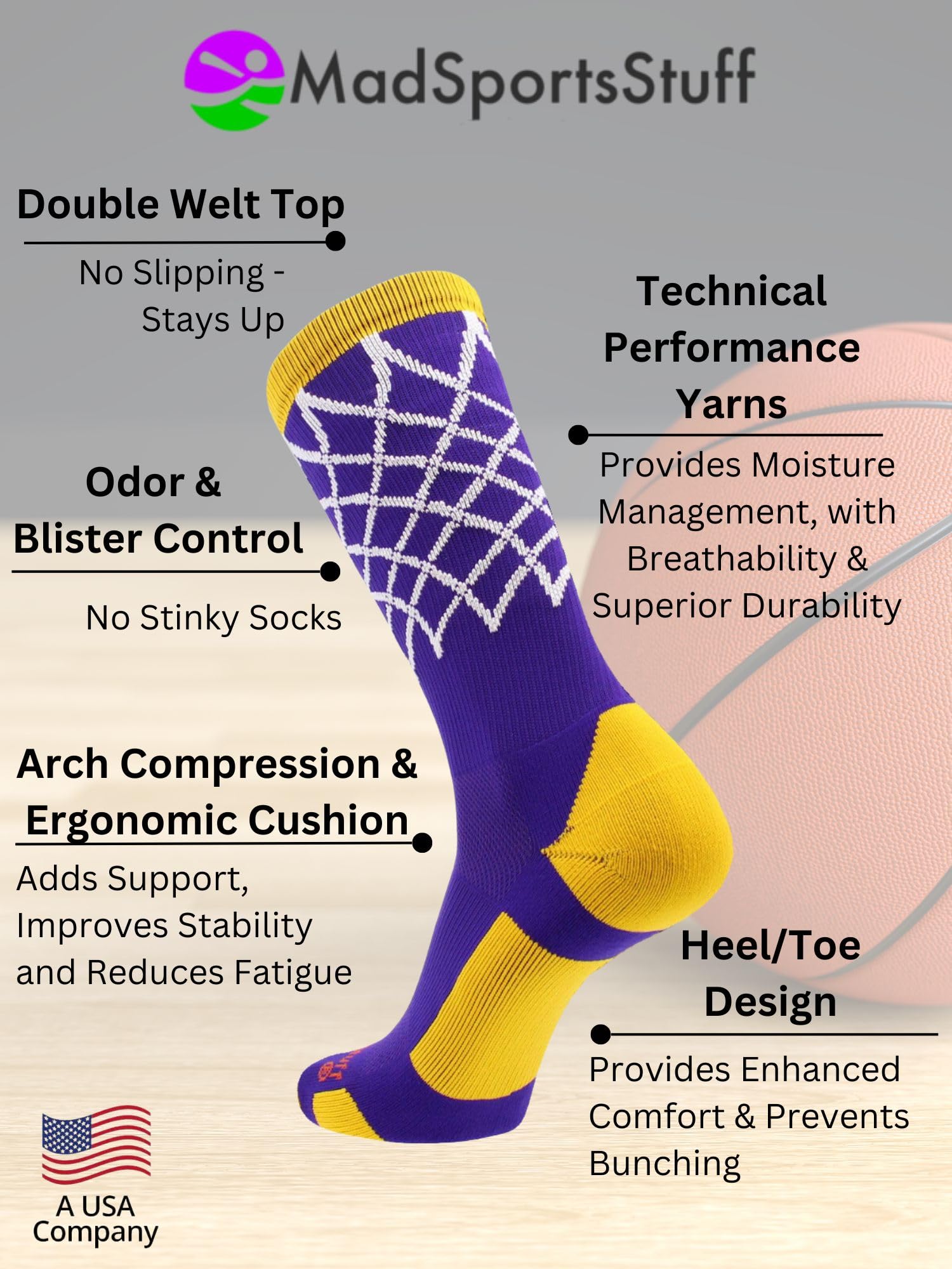 Description MadSportsStuff Crew Length Elite Basketball Socks with Net. High performance athletic basketball socks for team sports and elite athletes. For boys or girls, great for teams and gifts!