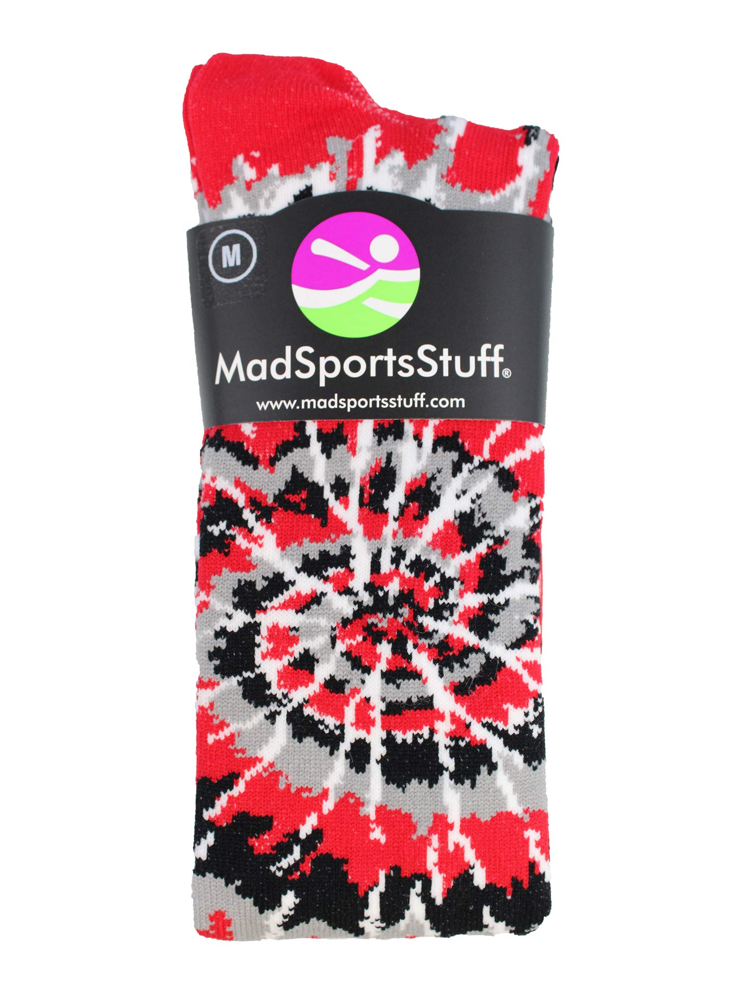 MadSportsStuff Crazy Tie Dye Calcetines sobre la pantorrilla (rojo/negro/blanco, pequeño)