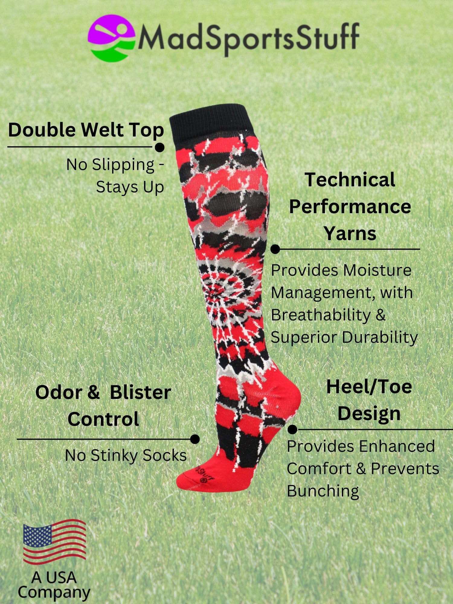 -PERFECT SOFTBALL SOCKS: Most tie dye socks are a simple tube sock, but we have taken the traditional tie dye and created a performance tie dye with technical yarns. Perfect for soccer, softball, field hockey, lacrosse, volleyball, wrestling, football, basketball, cheer, and more!