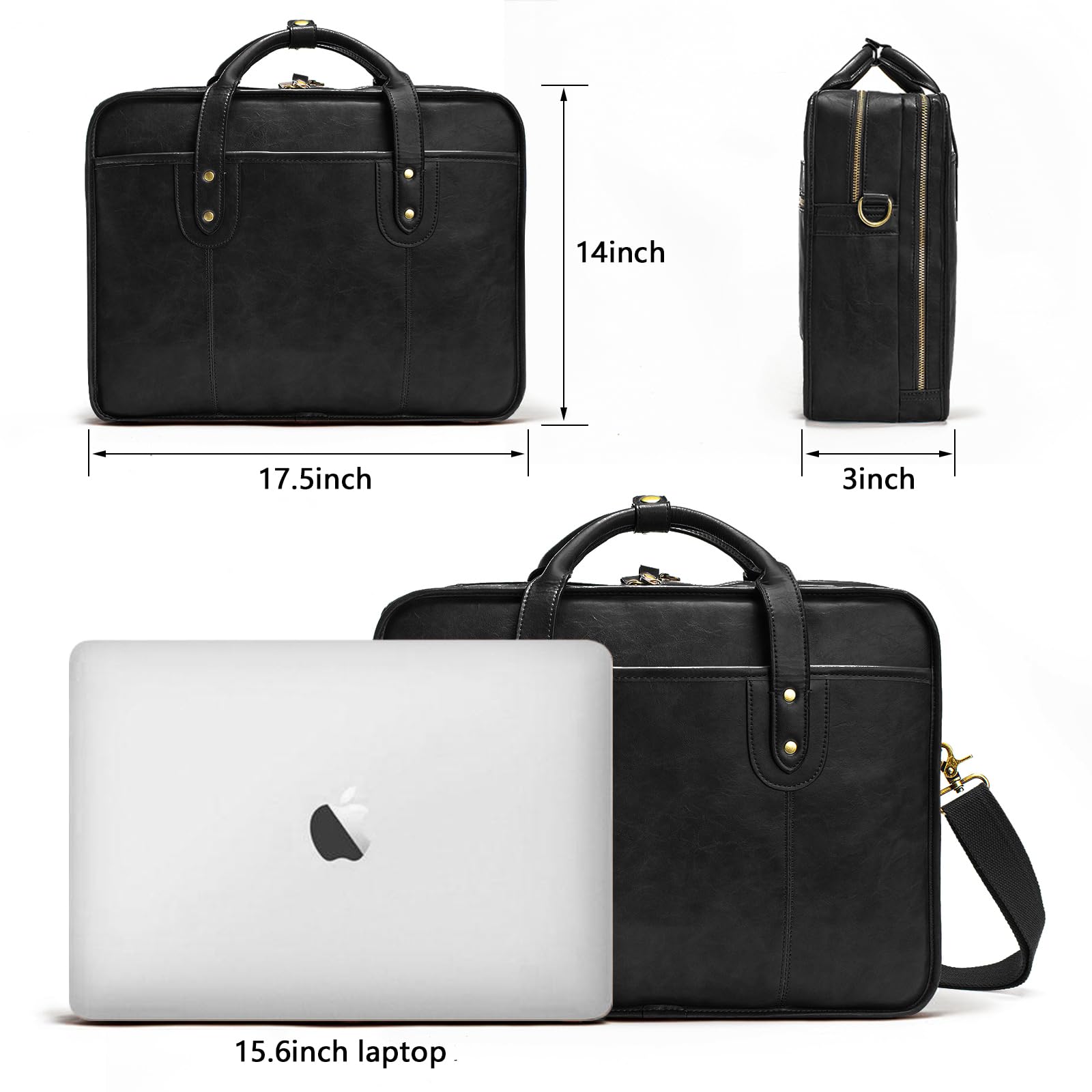 -Perfect Size : The external dimension of this leather laptop bag is 17.7"L * 3"W * 14"H, which can easily accommodate a 15.6-inch laptop, Weight: 2.68 pounds. The shoulder strap adjusts: 31.4"- 55'',strap width 1.5''.The length can be adjusted freely according to your preferences, realizing one-shoulder portable dual purpose.