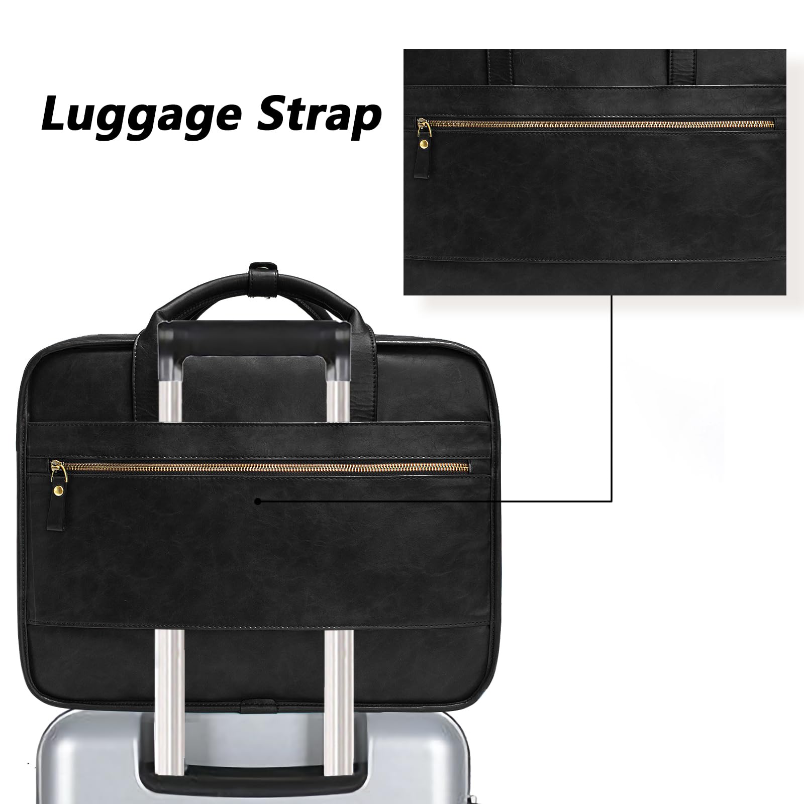 -Widely Used : This high-quality leather briefcase has adjustable shoulder straps and the back compartment comes with a luggage strap, allowing the briefcase to securely fit on the handle of a rolling suitcase - ease the burden in you journey,free your hands at any time.Whether at work or in life, it is a powerful little assistant, neatly organizer the items and placing daily needs.