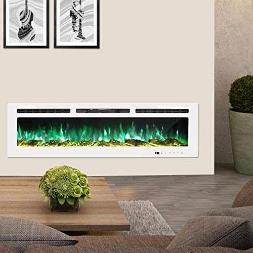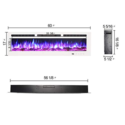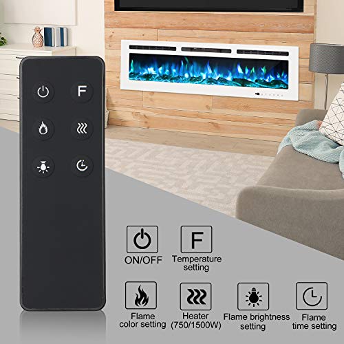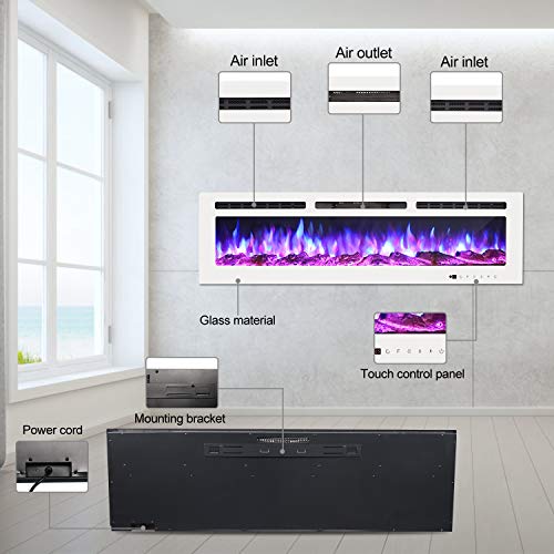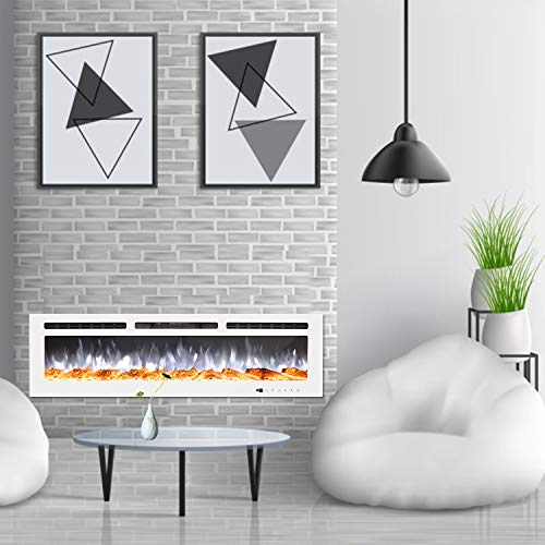 Maxhonor - Chimenea eléctrica para montar en la pared, panel de vidrio con pantalla táctil o control remoto, 1500/750 W (blanco, 60 pulgadas)