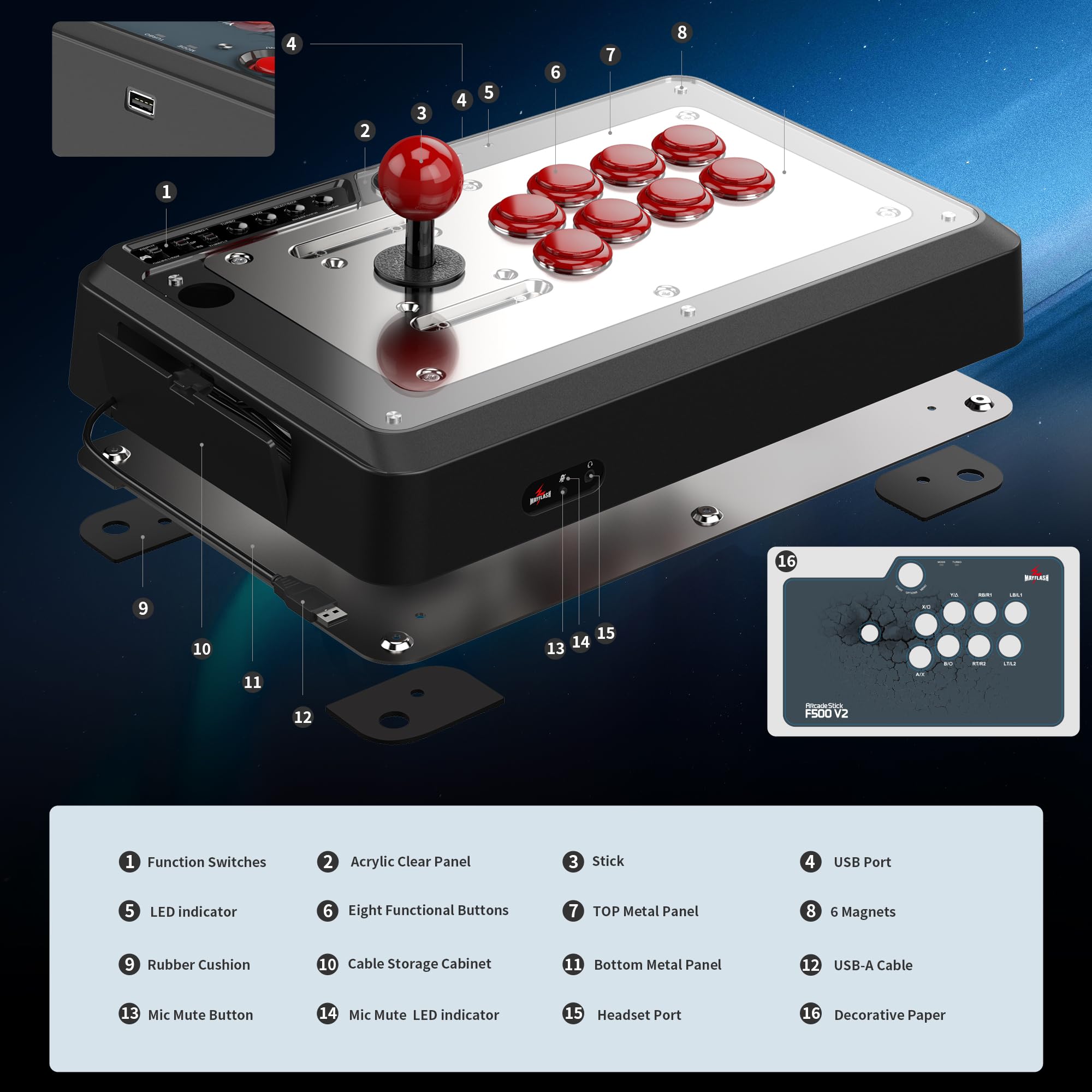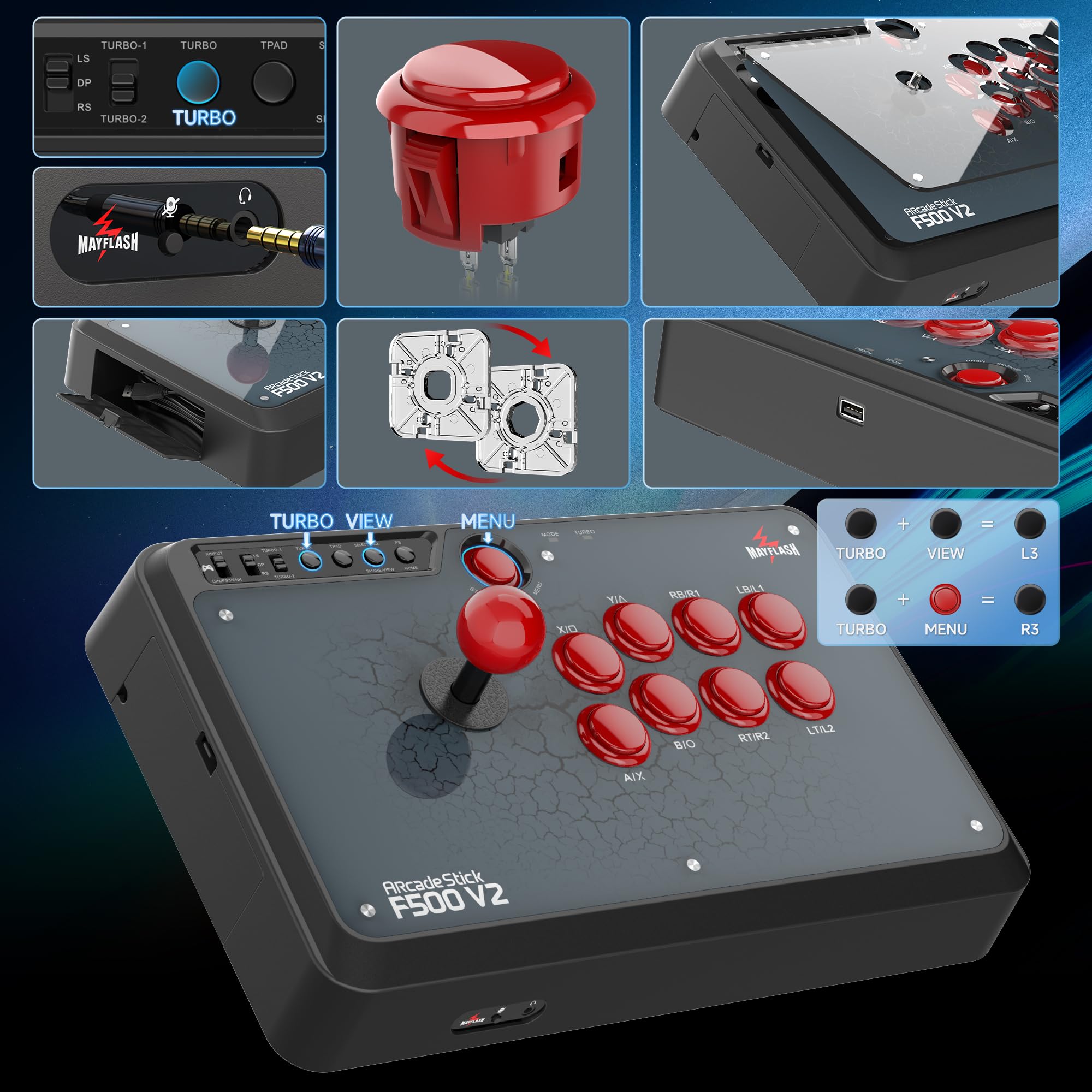 MAYFLASH Universal Arcade Fighting Stick F500 para Switch/Switch 2, Xbox Series X/S, Xbox One, Xbox 360, PS4, PS3, Windows, macOS, Android, Raspberry Pi, Steam Deck, PS Classic, NEOGEO Mini