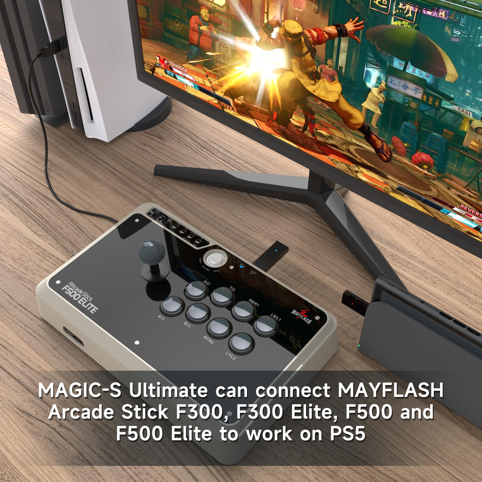 -Bluetooth Controller Compatibility: Xbox Series X Controller, Xbox Series S Controller, Xbox One Bluetooth Controller, Xbox Elite Wireless Controller Series 2, PS5/PS4/PS3 Controller, Switch Pro, Wiimote, WiiU Pro and more. MAGIC-S Ultimate CAN connect MAYFLASH Arcade Sticks F300, F300 Elite, F500 and F500 Elite to work on PS5 for PS5 games.