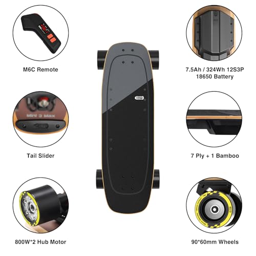 Mini Skateboard Electric Meepo con control remoto, hasta 28 mph, rango de 11 millas, 330 libras de carga máxima, crucero de arce para adultos y adolescentes, mini5 mini3 max
